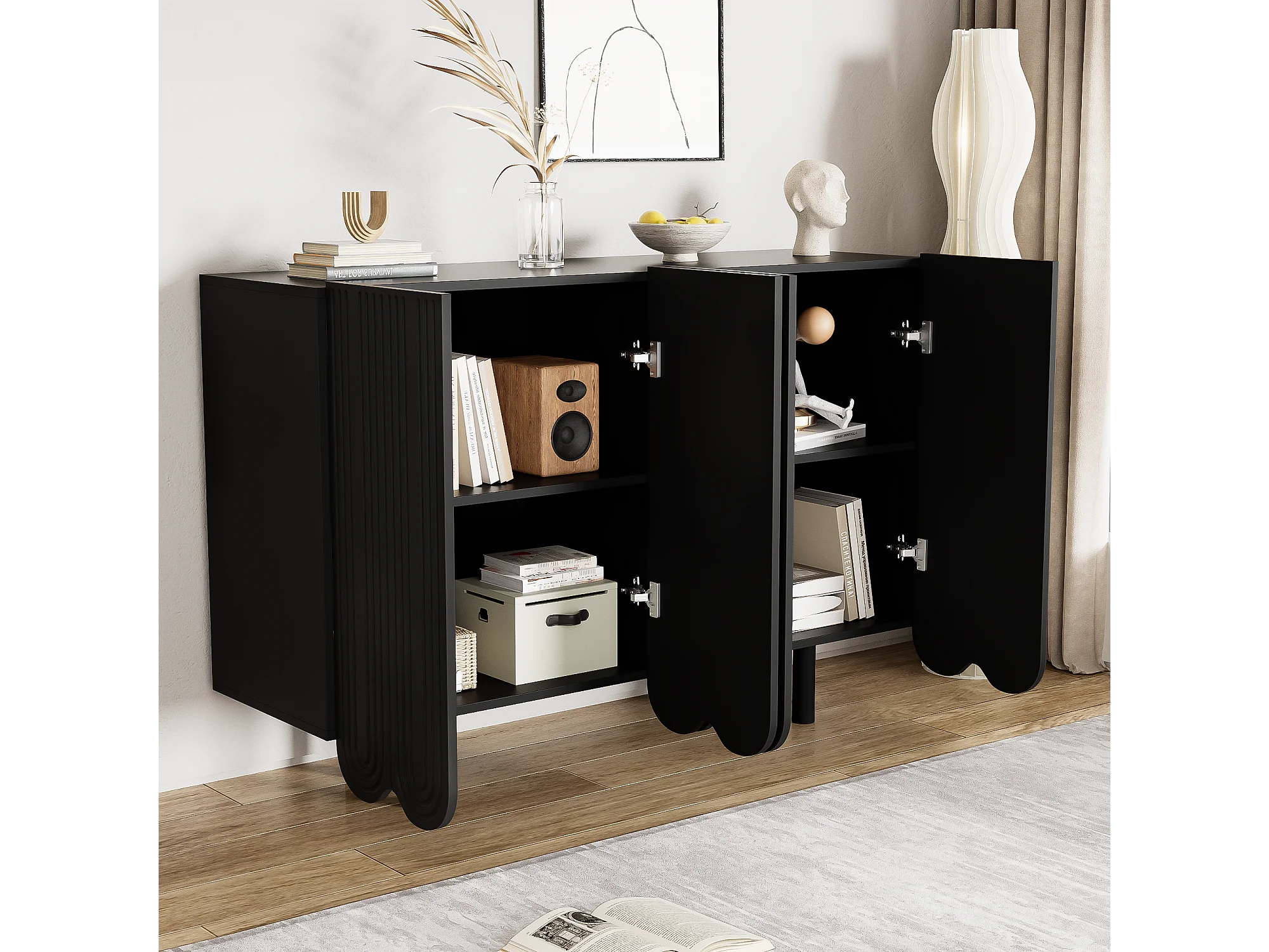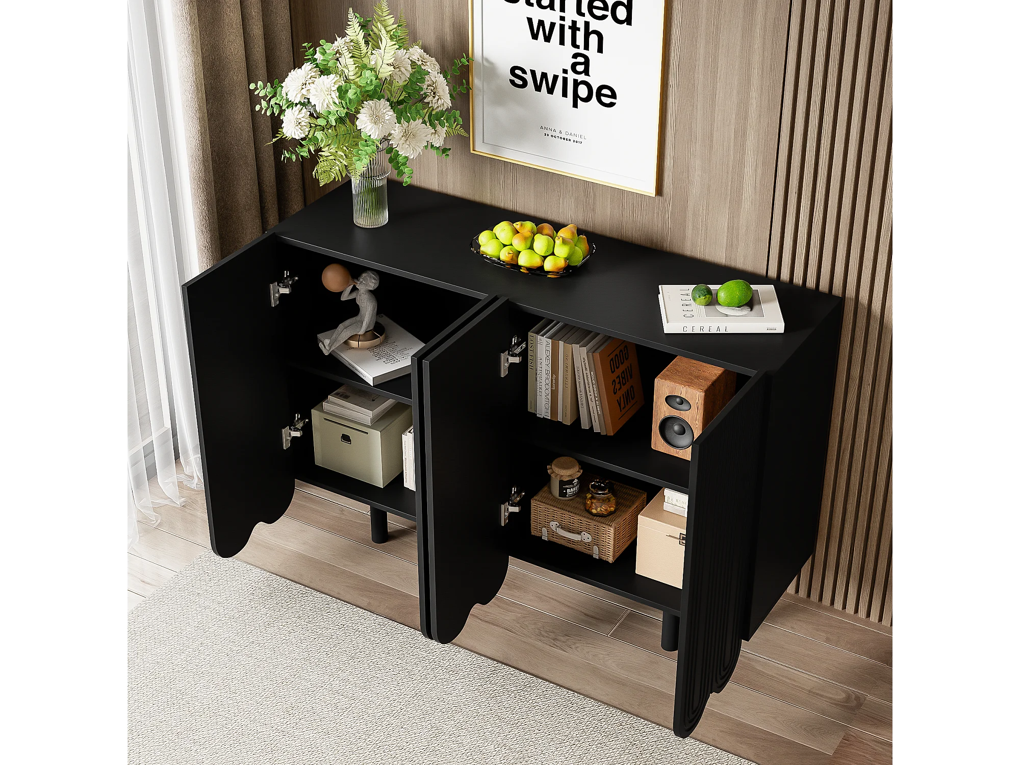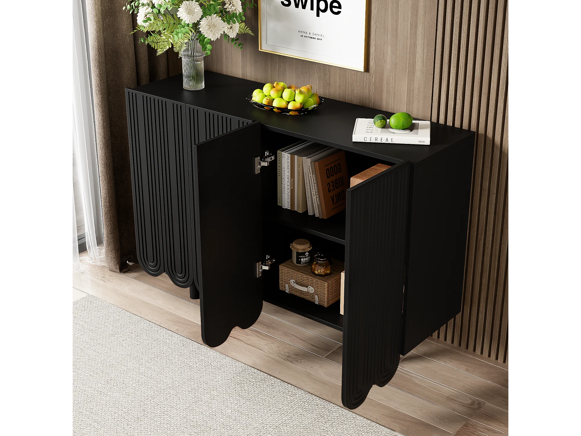 Buffet avec portes sculptées en forme de goutte, MDF, noir (120x37.5x80.8 cm)