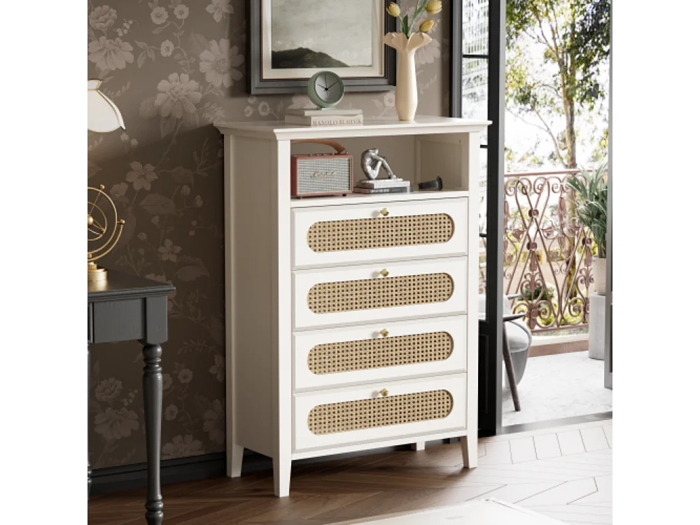 Buffet avec Rattan, Pieds en bois massif, Surface laquée
