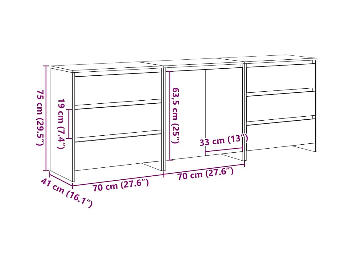 Buffet 3 pièces Chêne noir 70 x 41 x 75 cm Bois d'ingénierie
