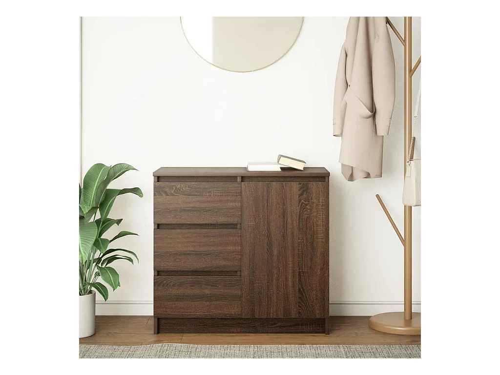 Buffet avec tiroir chêne brun 71x35x65 cm bois d'ingénierie