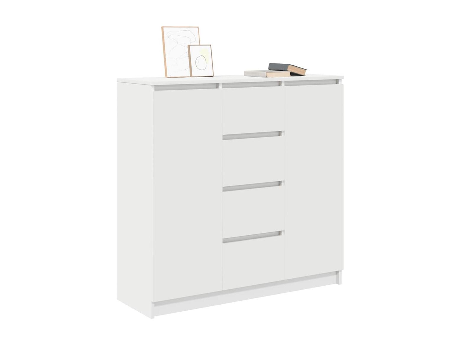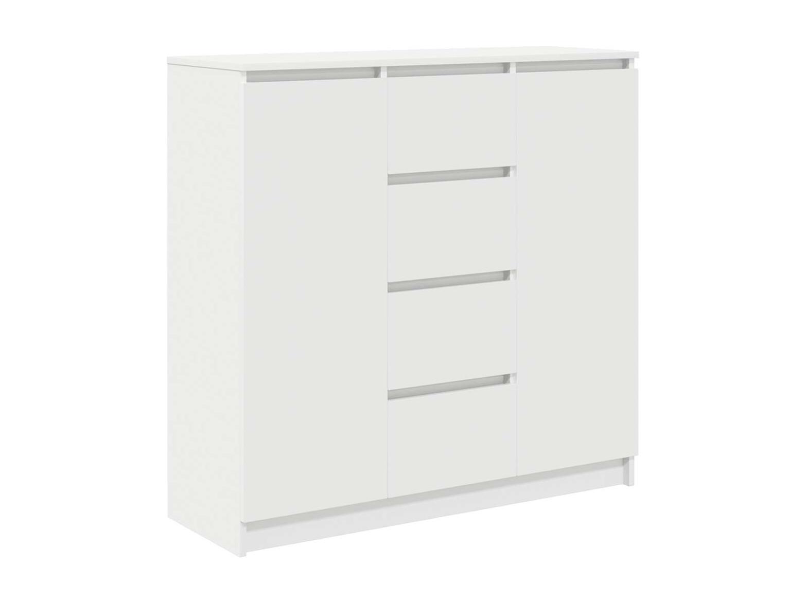 Buffet moderne avec portes sculptées, 4 tiroirs, 4 portes, métal et pieds courbés, MDF blanc (120x35x71.5 cm)