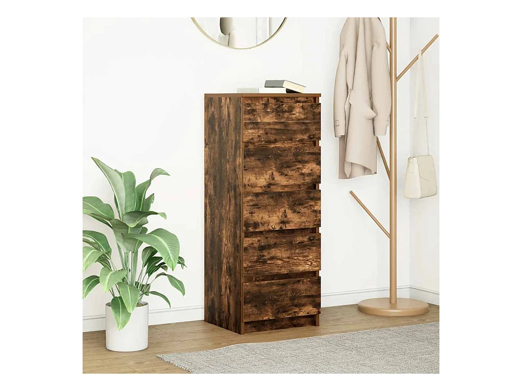 Buffet avec tiroirs chêne fumé 37,5x35x99 cm bois d'ingénierie