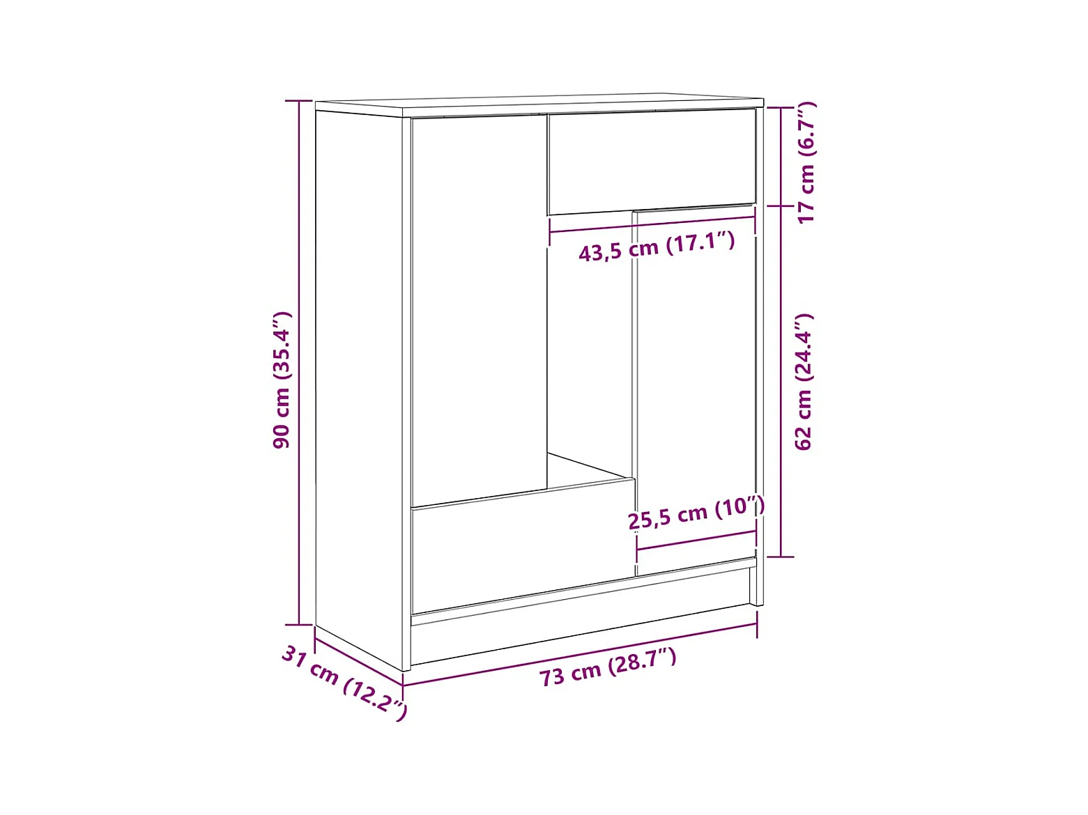 Buffet avec tiroirs et portes blanc 73x31x90 cm