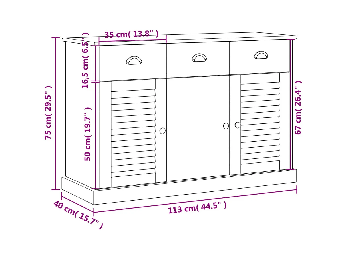 Buffet avec tiroirs VIGO 113x40x75 cm blanc bois massif de pin