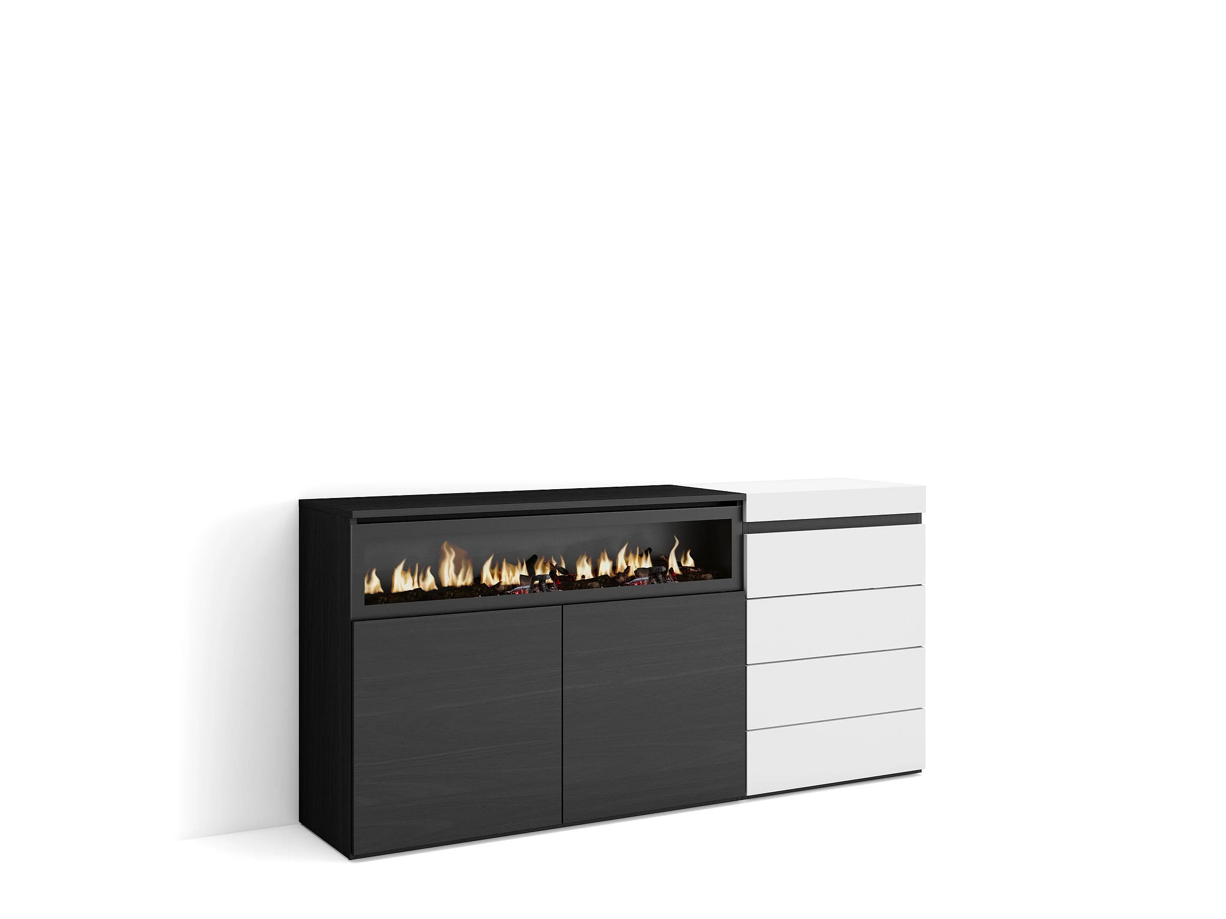 Buffet, Bahut, 157x35x75cm, Chambre à coucher, pièce, Cheminée électrique, Commode, Buffet, Blanc