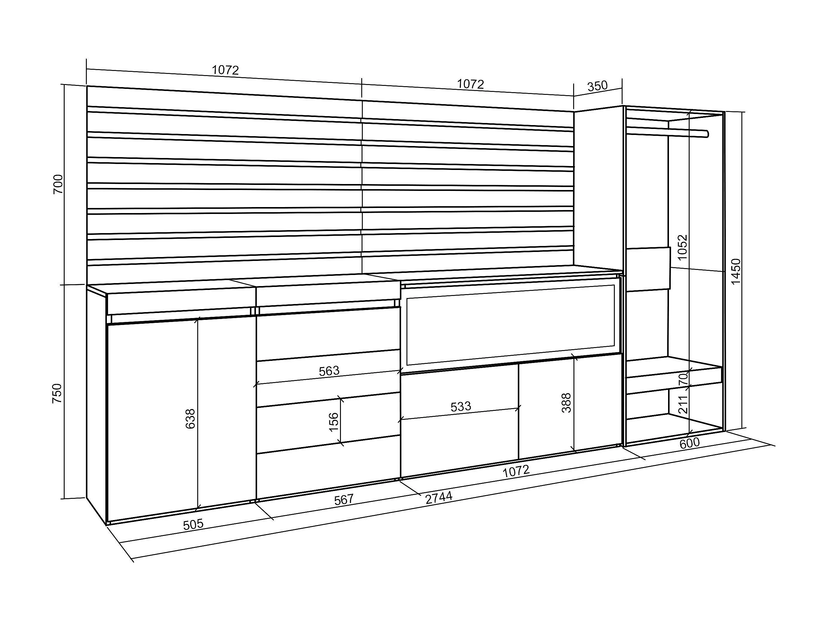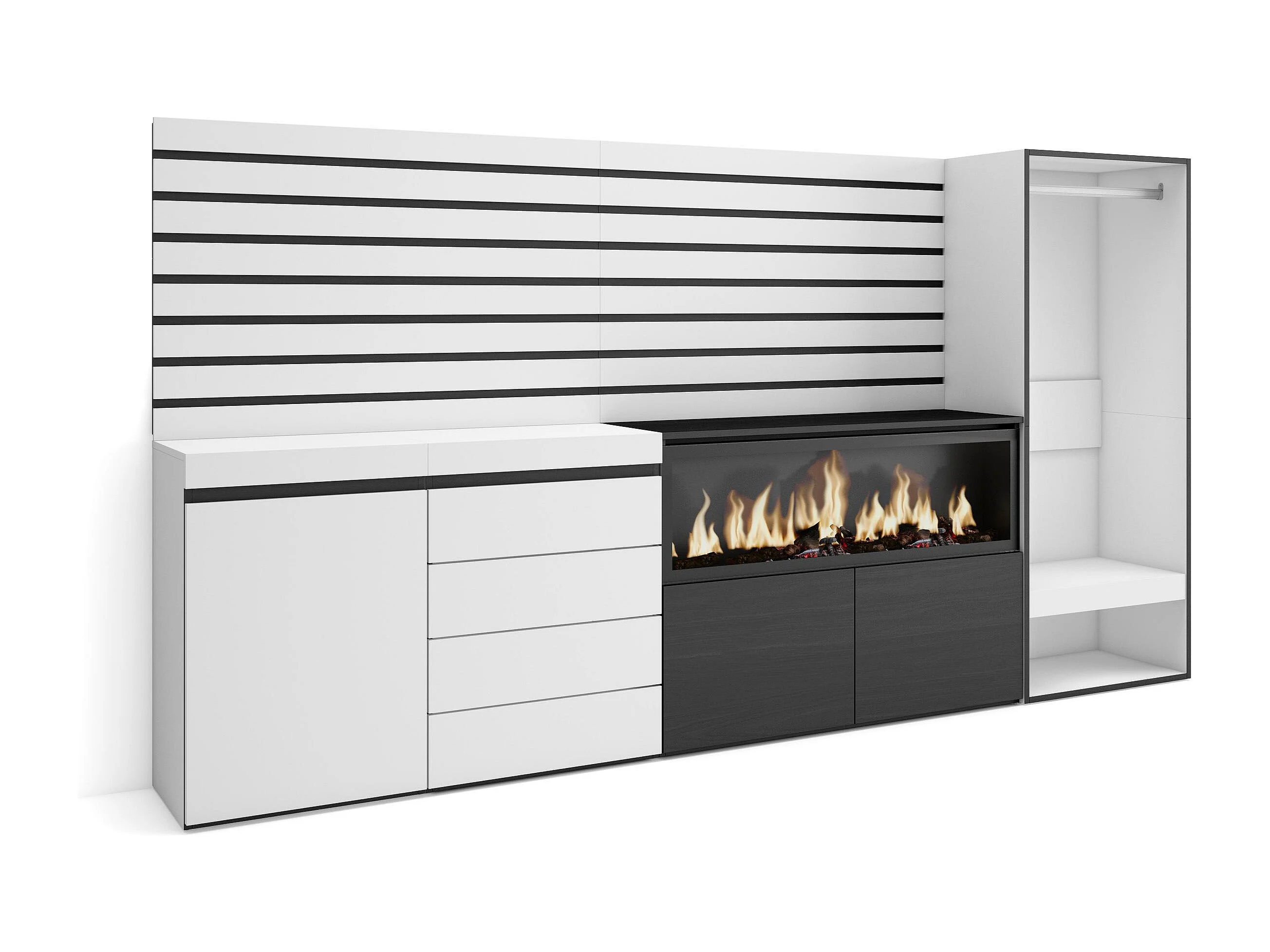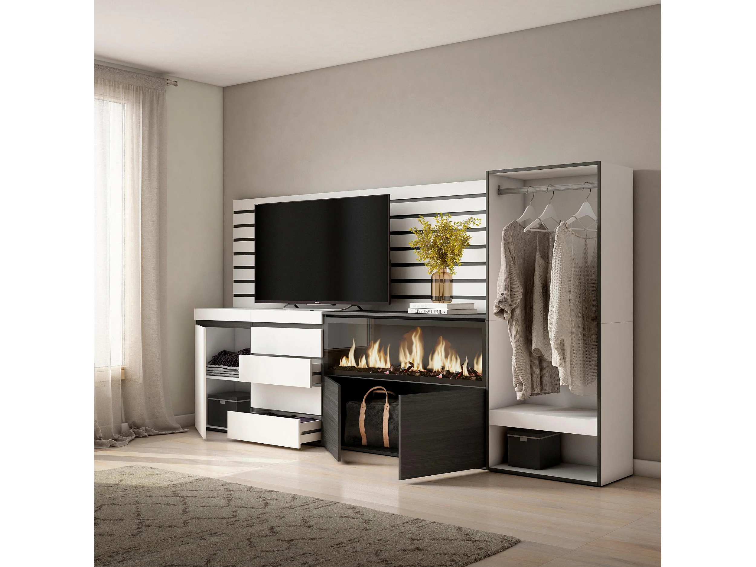 Buffet, Bahut, 274x35x145 cm, Chambre à coucher, pièce, Cheminée électrique XXL, Commode, Buffet, Vestiaire ouvert, Blanc