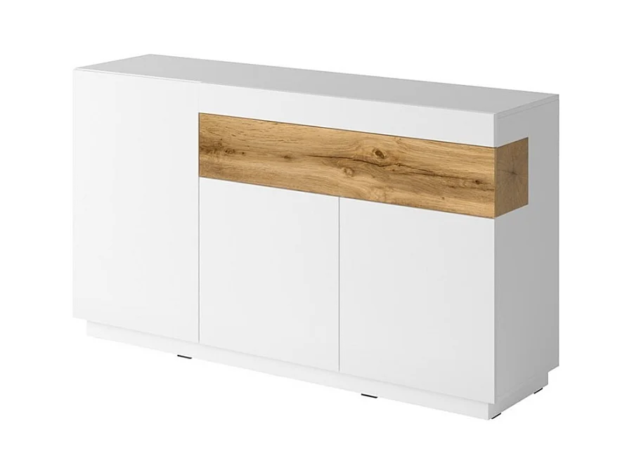 Buffet, bahut, enfilade KILES trois portes et un tiroir. Coloris blanc et chêne. Style design