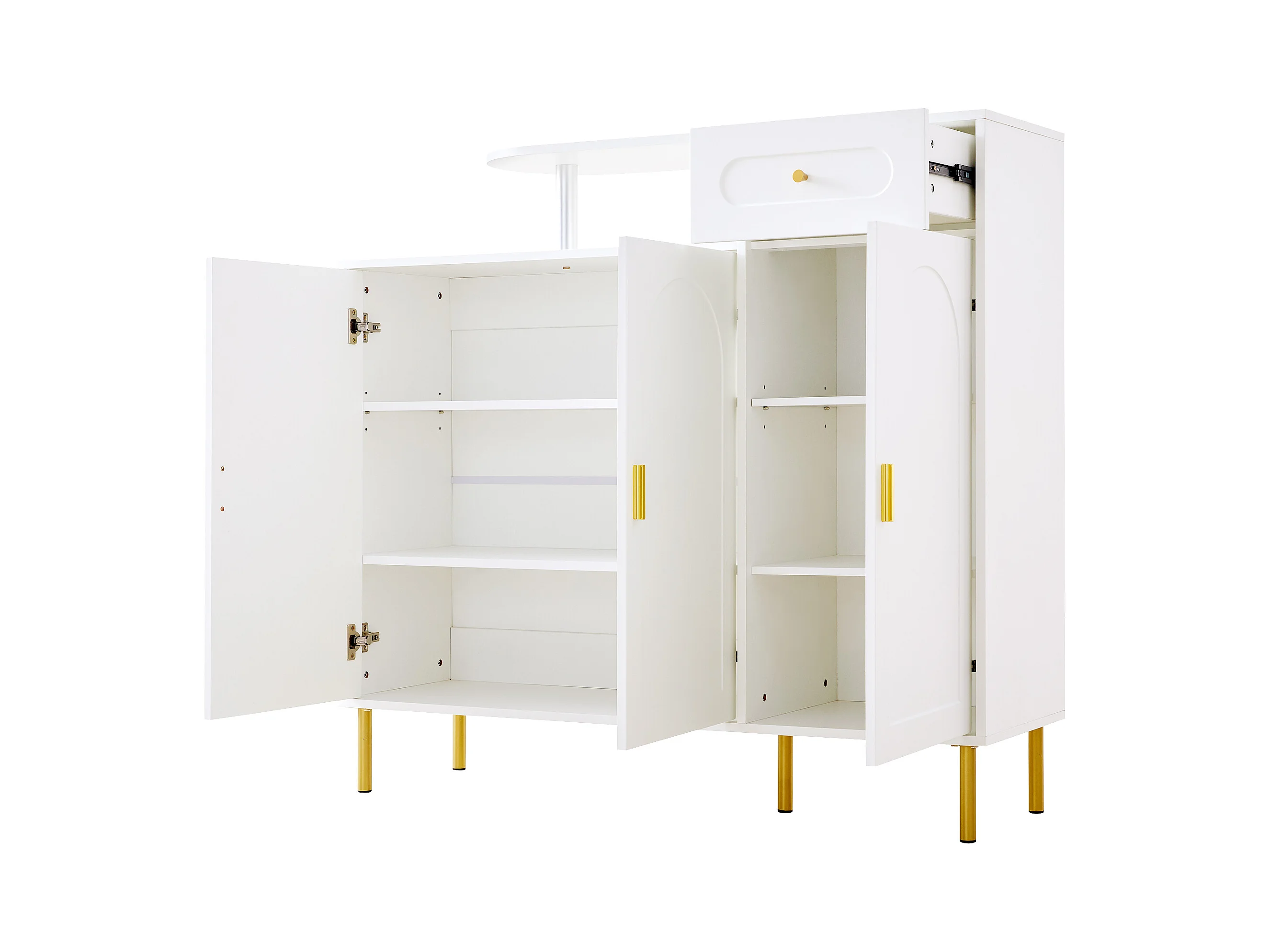 Buffet bas brillant - 140 x 40 x 80 cm - avec 4 portes - poignées et pieds en métal - MDF - blanc
