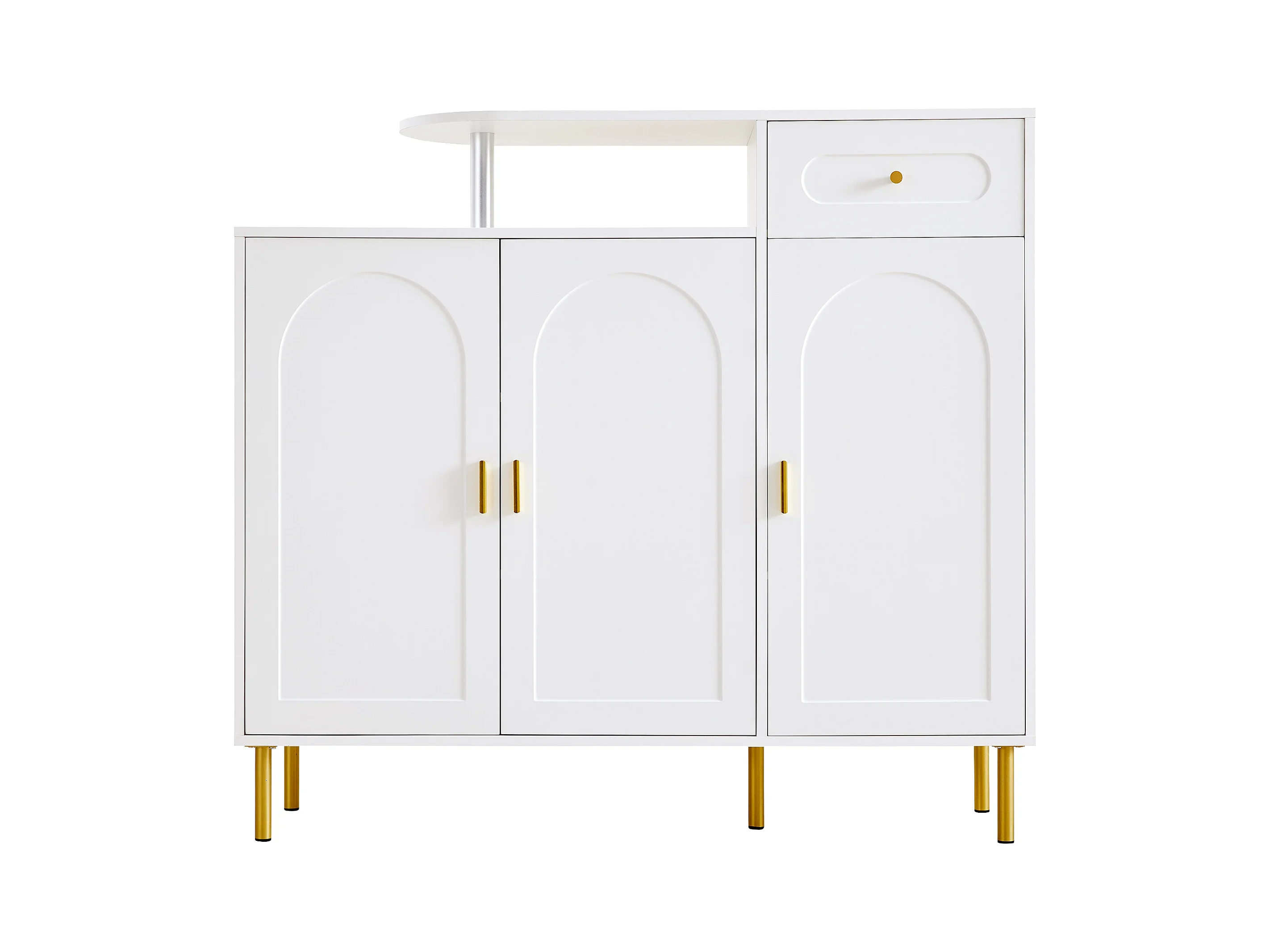 Buffet bas moderne - 80 x 35 x 79.5 cm - avec 2 portes + 2 tiroirs – pieds en métal - MDF - blanc