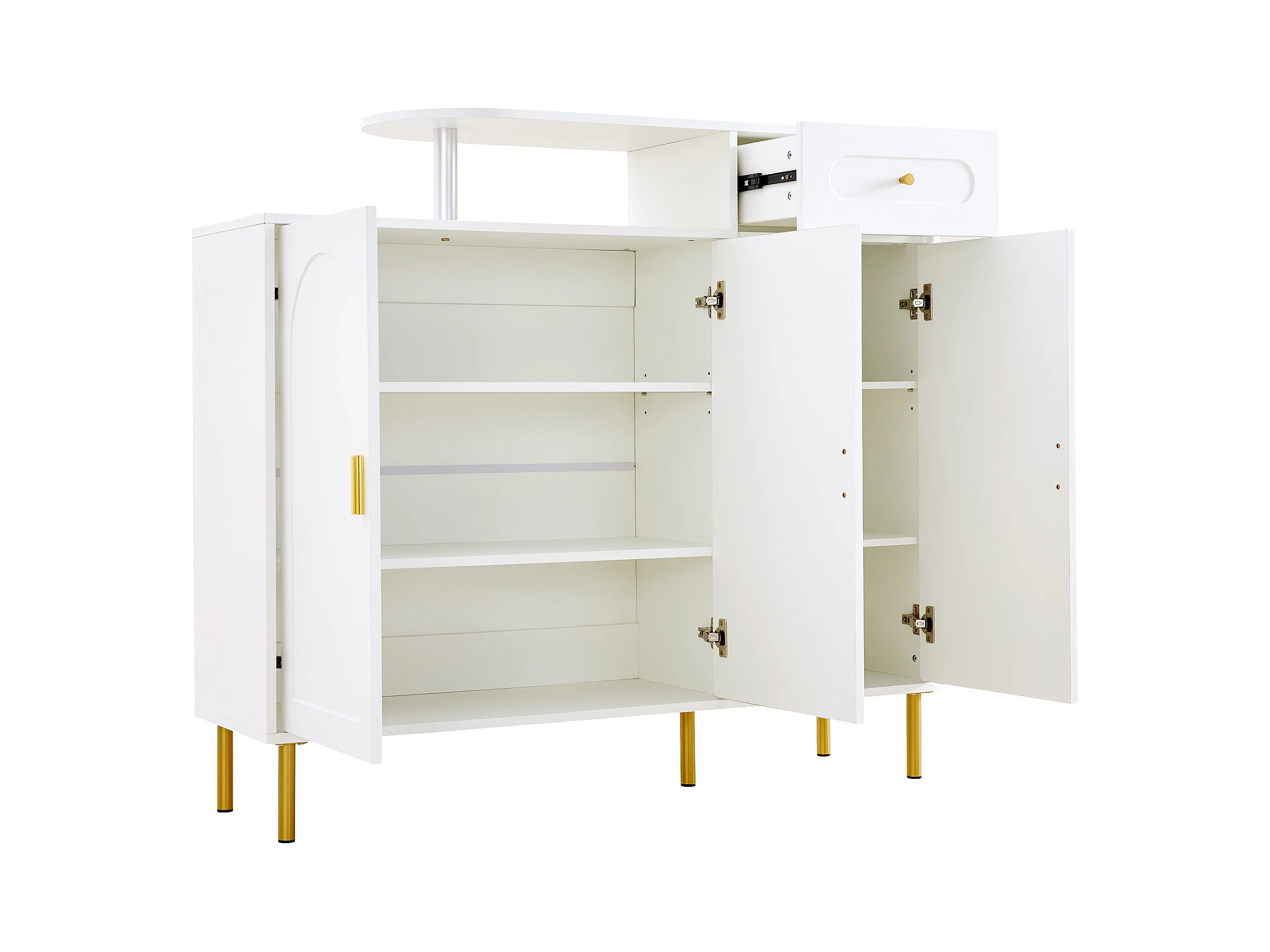 Buffet bas brillant - 150 x 40 x 80 cm - avec 1 tiroir + 4 portes - Panneau de particules + MDF - blanc