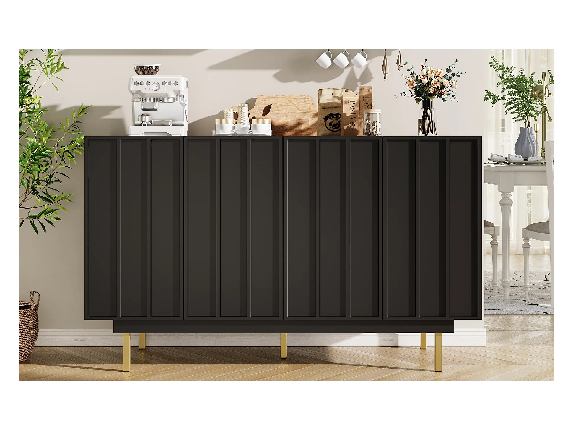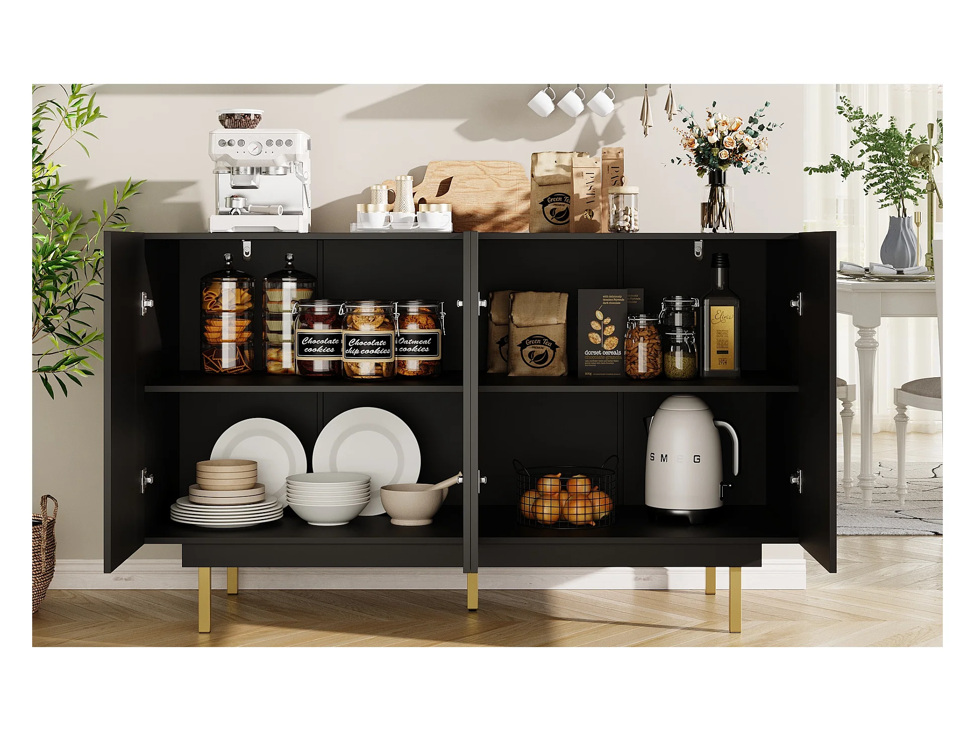 Buffet de salon - 160 x 40 x 80 cm - avec 4 portes + pieds brillants - aggloméré - noir