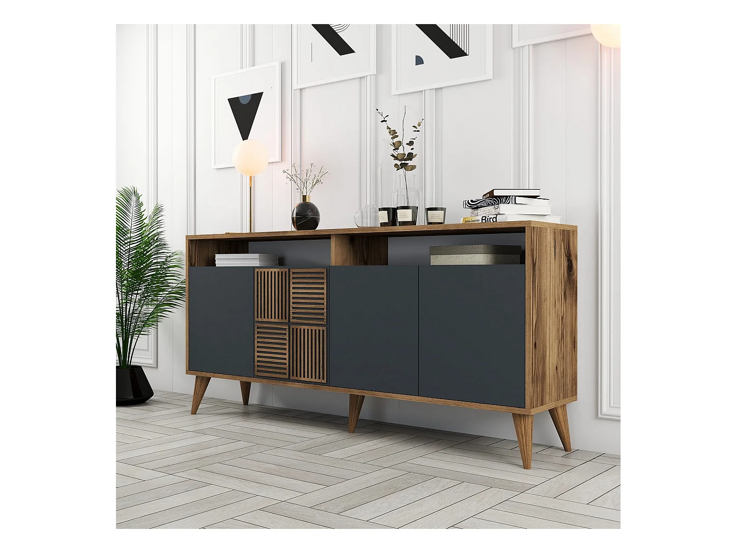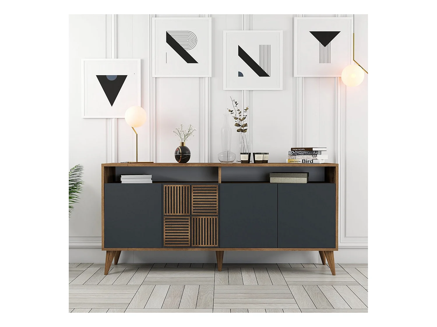 Buffet bas 4 portes et 2 tiroirs Kaltes L160cm Bois et Anthracite