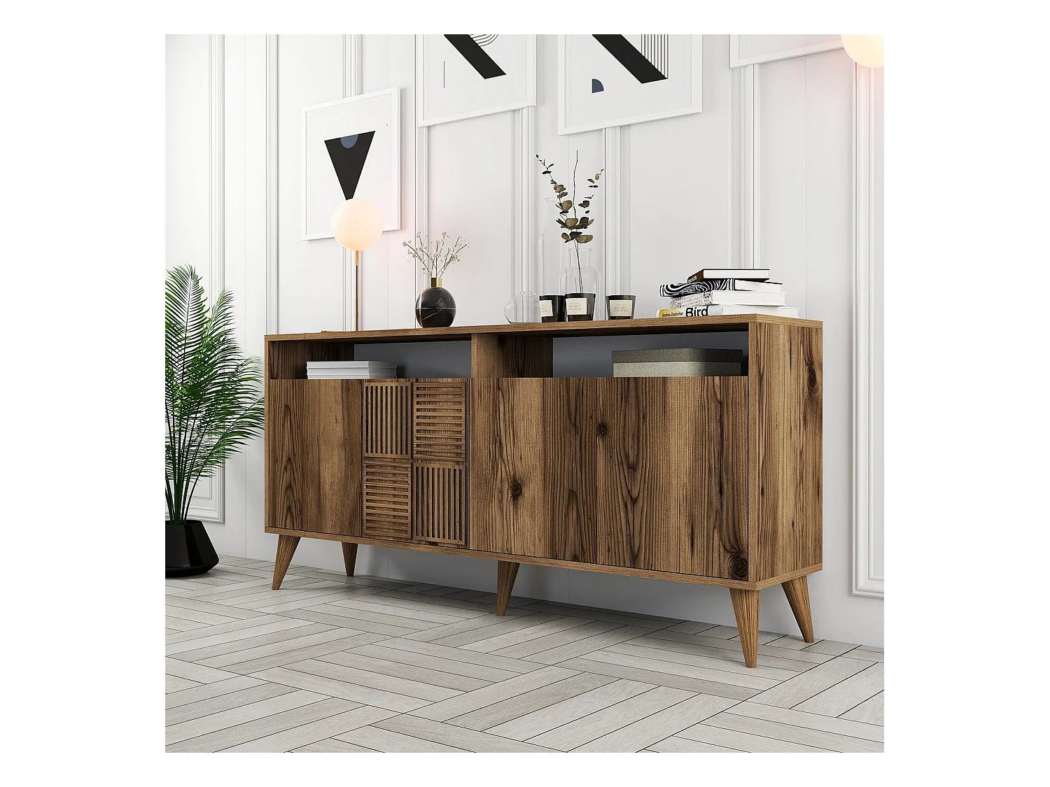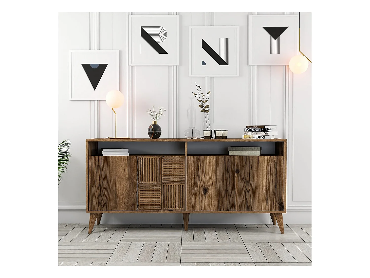 Buffet 3 niches et 4 portes décor chêne H125 cm - KRISTA