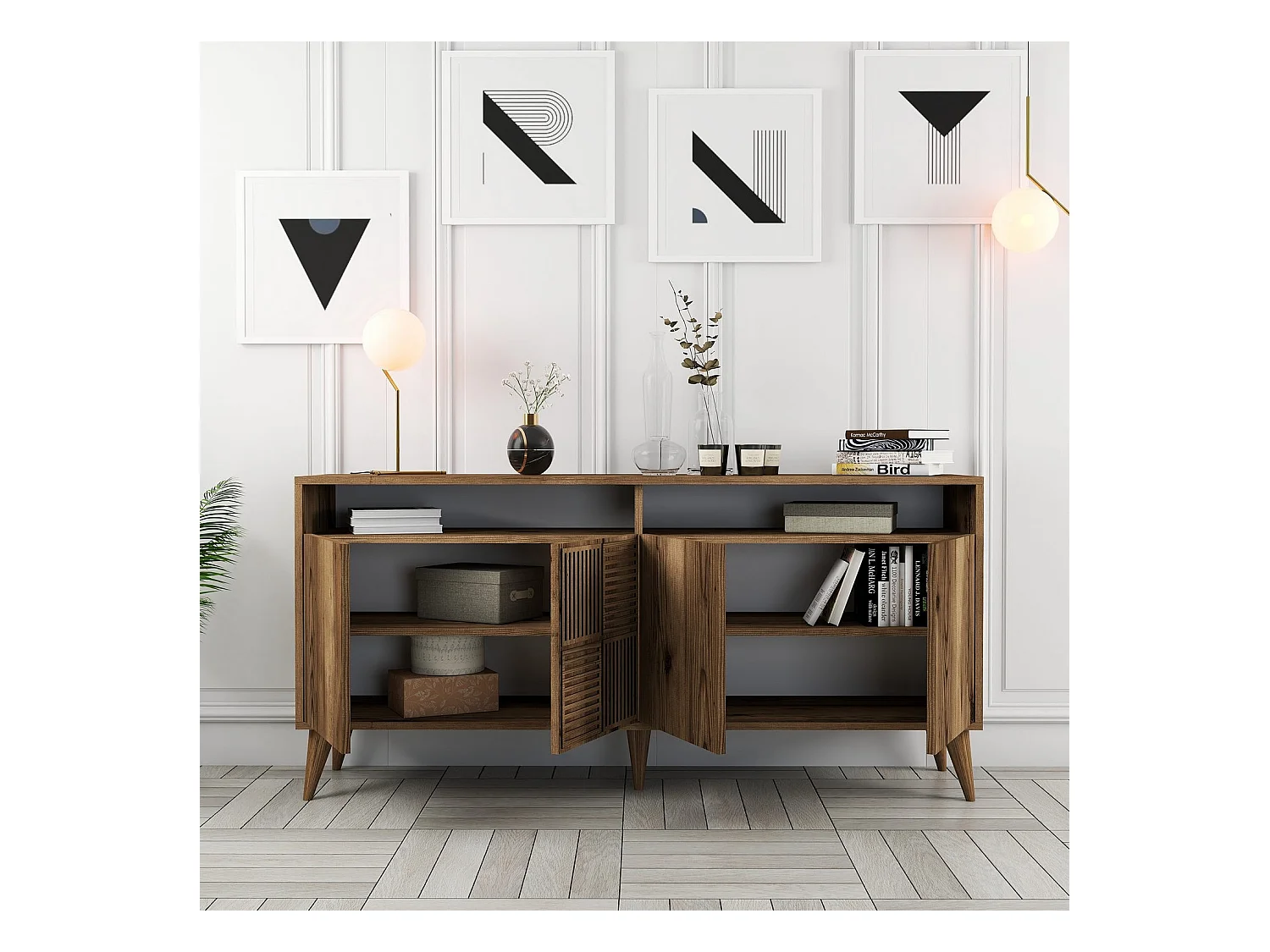 Buffet bas 4 portes et 2 tiroirs Kaltes L160cm Bois Naturel