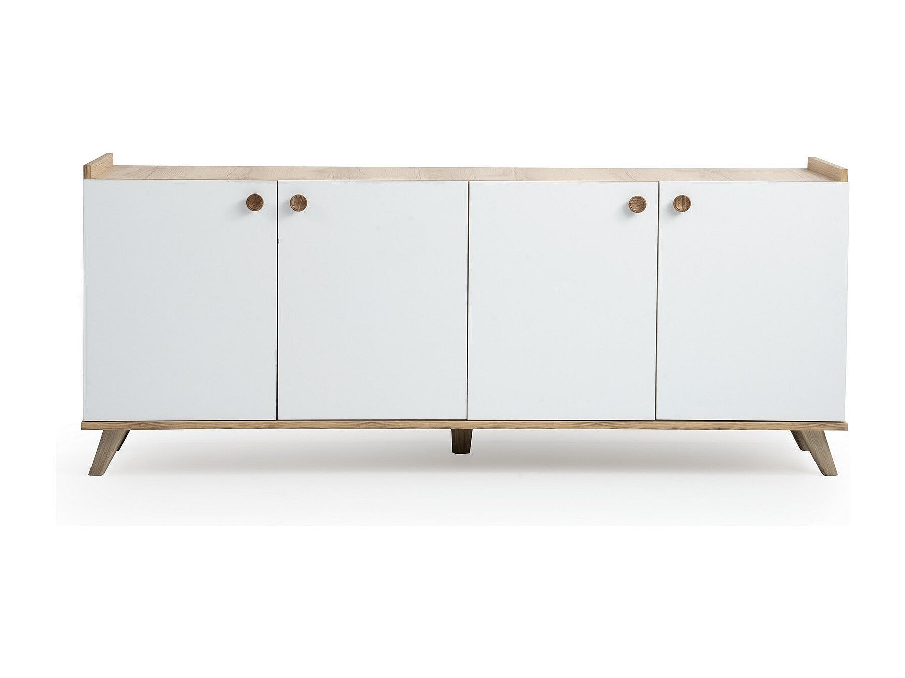 Buffet 4 portes décor chêne et blanc L180 cm - Summer