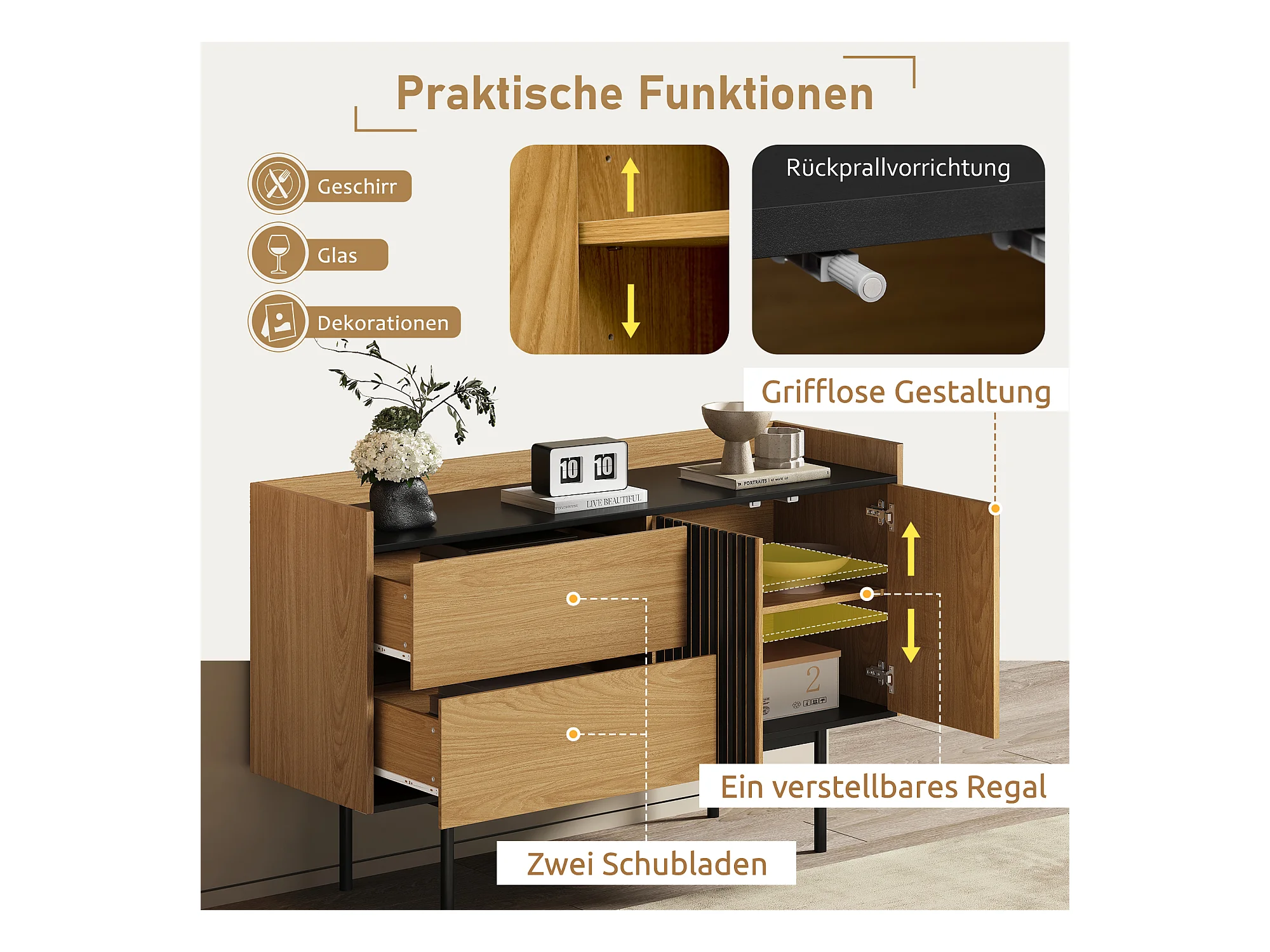 Buffet moderne 130x40x80.5cm - avec 2 tiroirs - avec 2 portes - étagères réglables - naturel + noir
