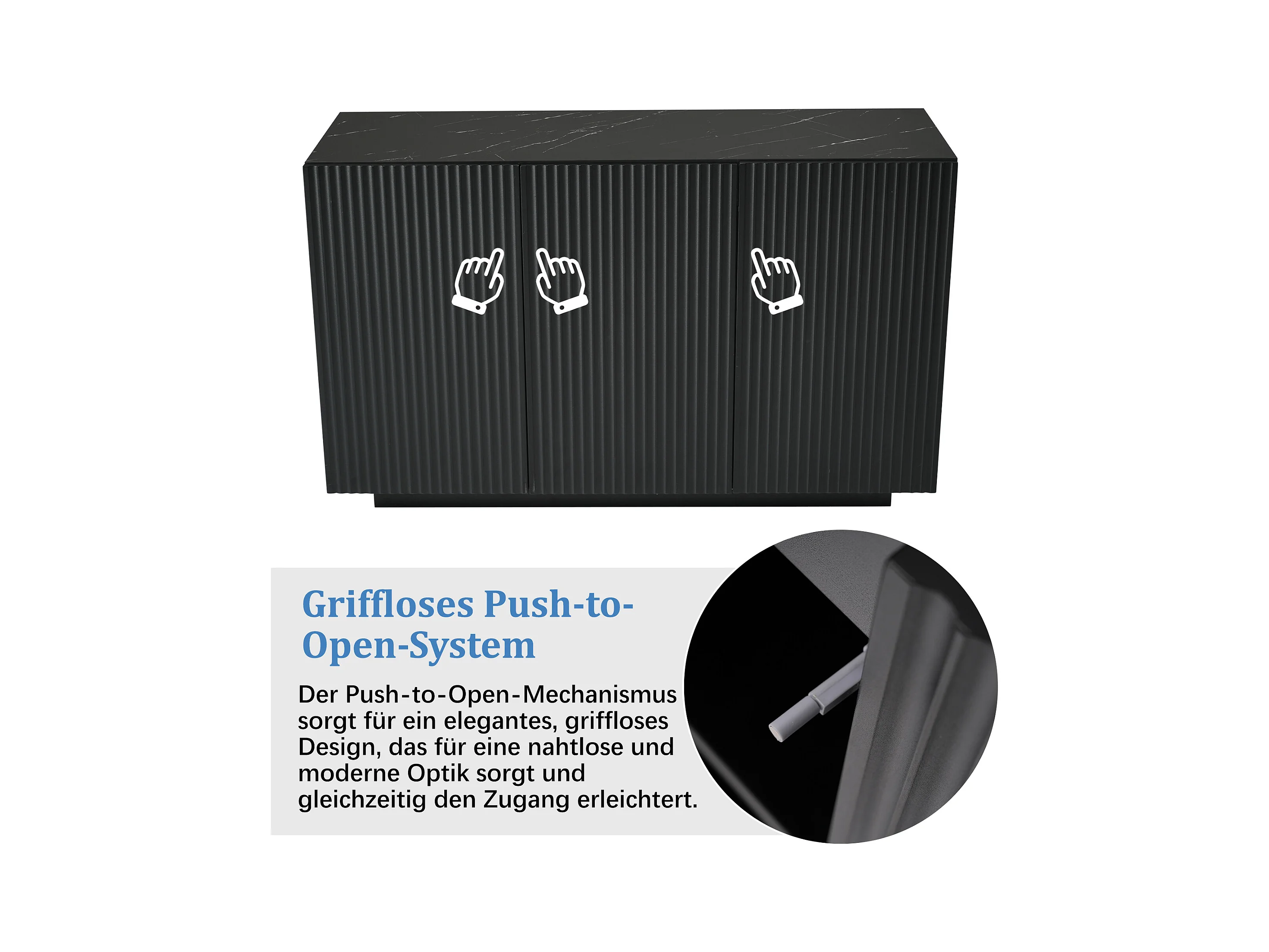 Buffet bas avec 3 portes - 120 x 70 x 75 cm - LEDs - Plateau en effet marbre - Bois MDF - Noir