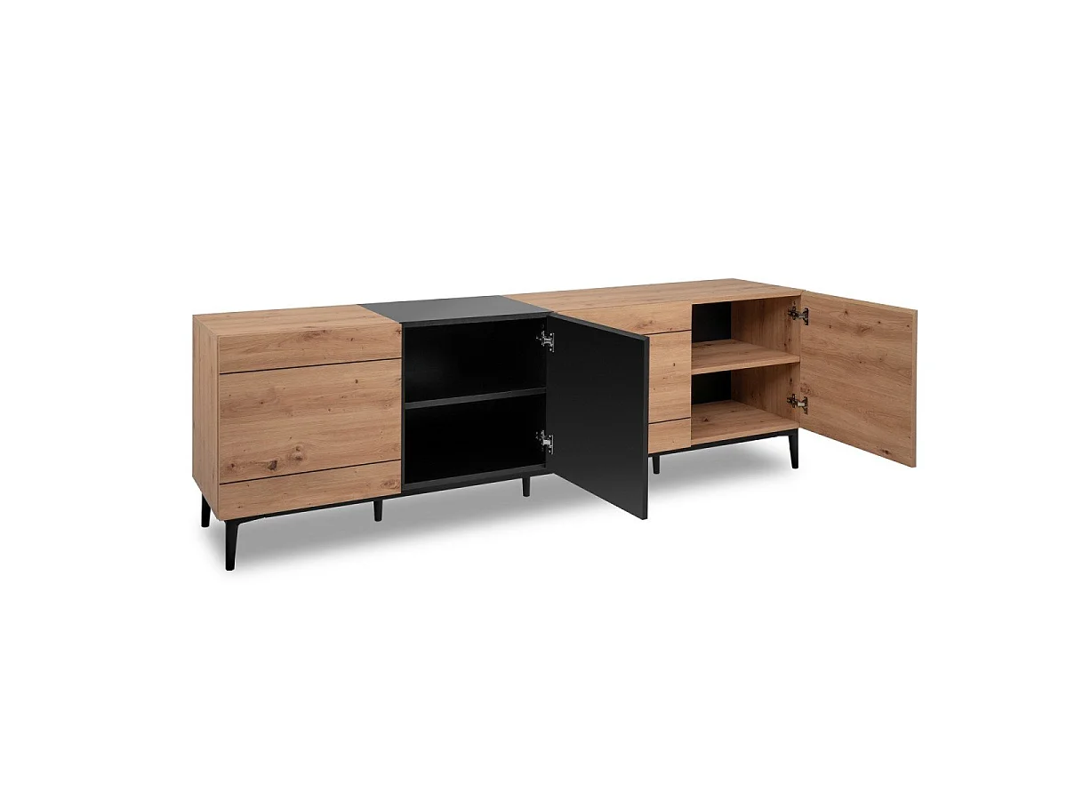 Buffet Bas 4 Portes décor Bois clair L200 cm - Nola
