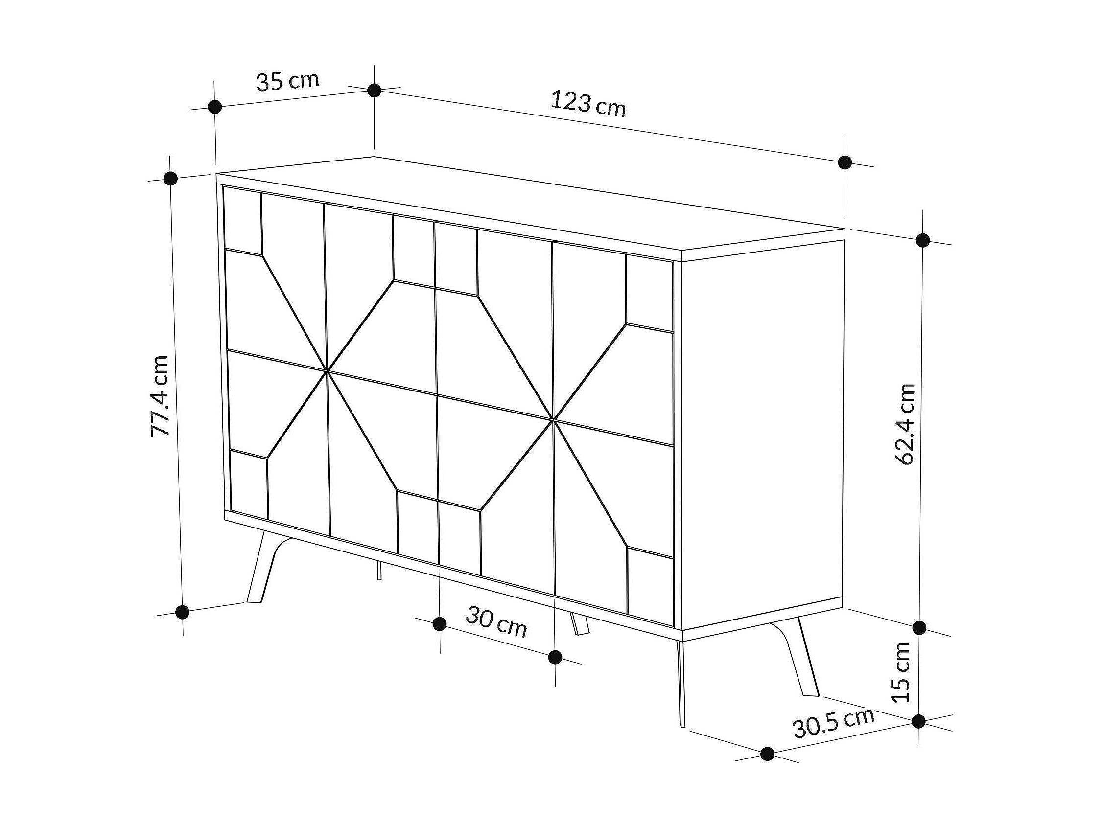 Buffet 4 portes 200x40x83,5 cm Elios chêne nature