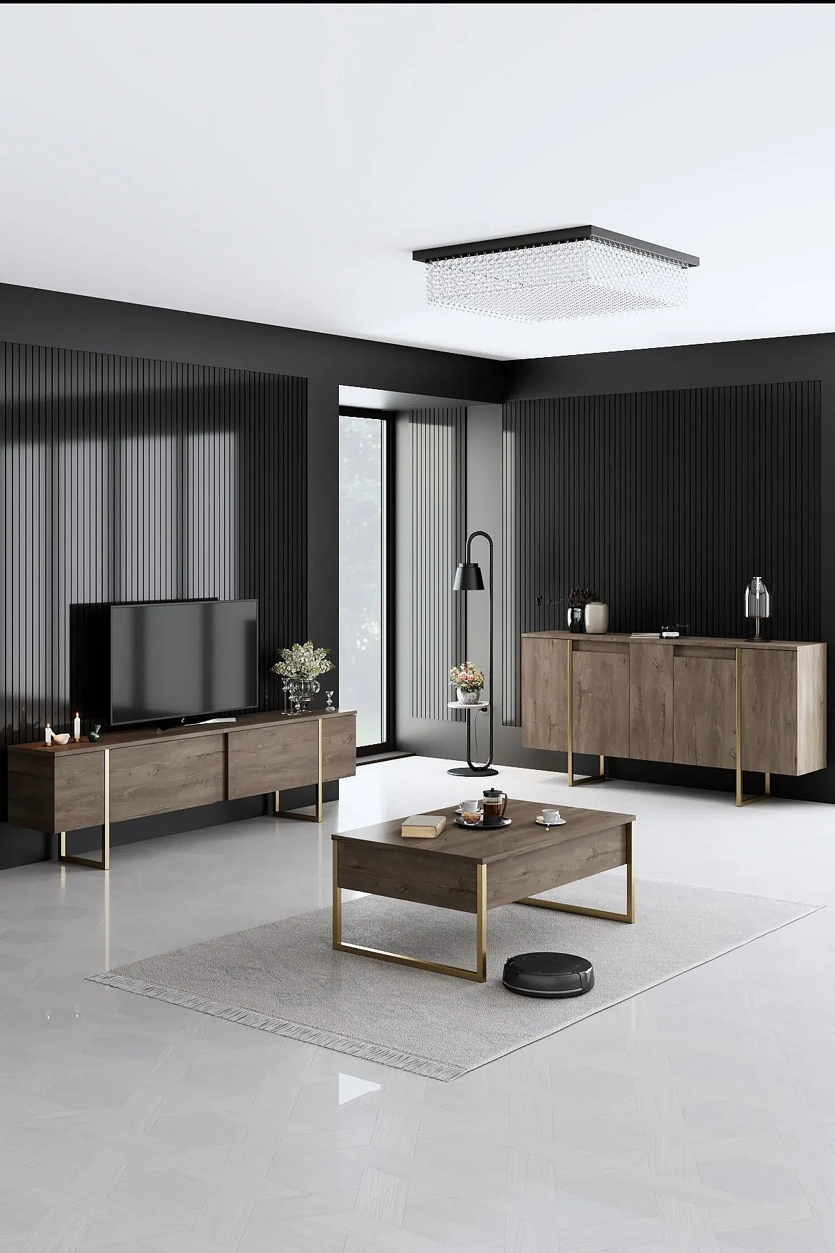 Buffet bas Sibylle L160cm Métal Or et Bois foncé