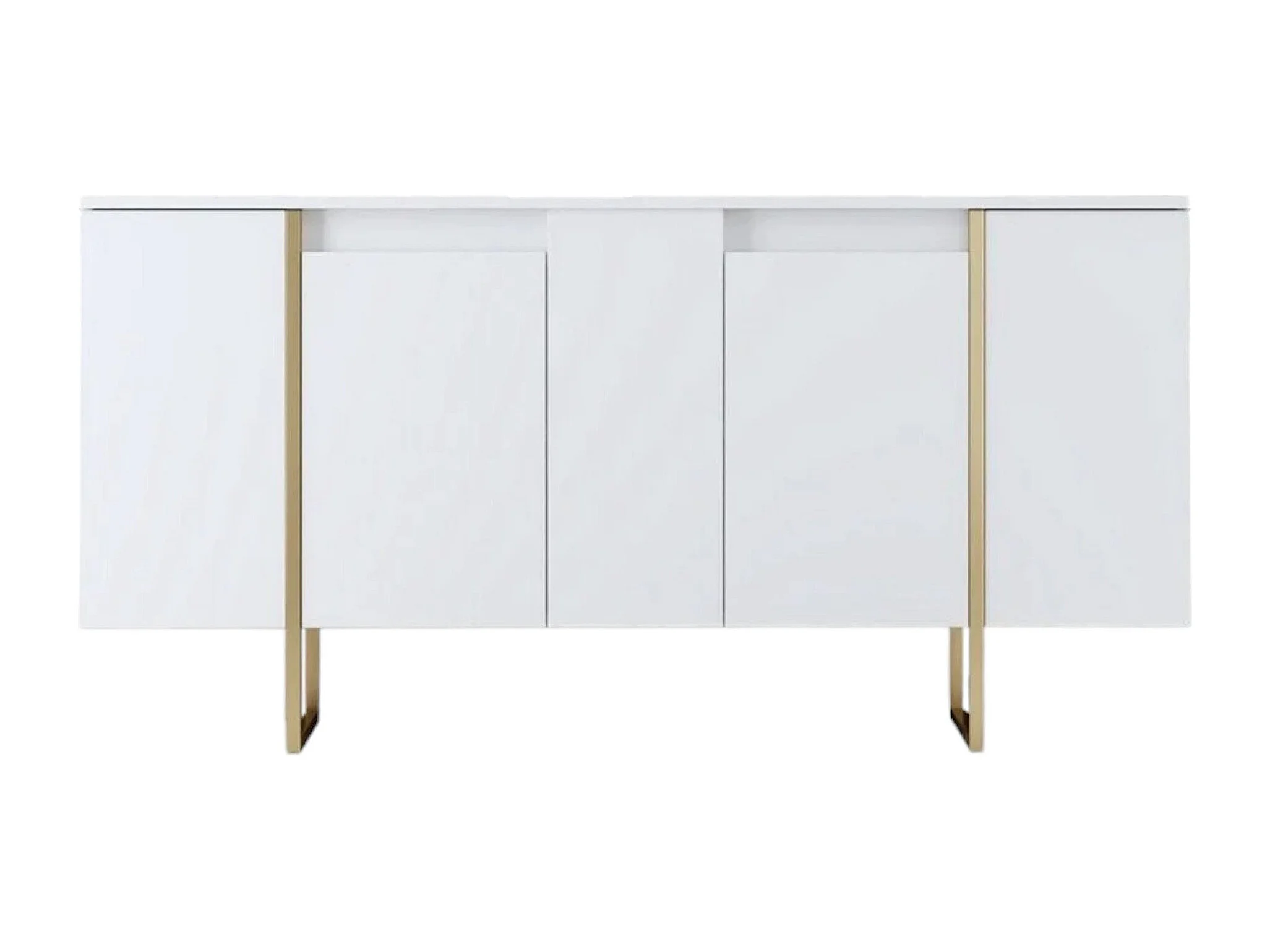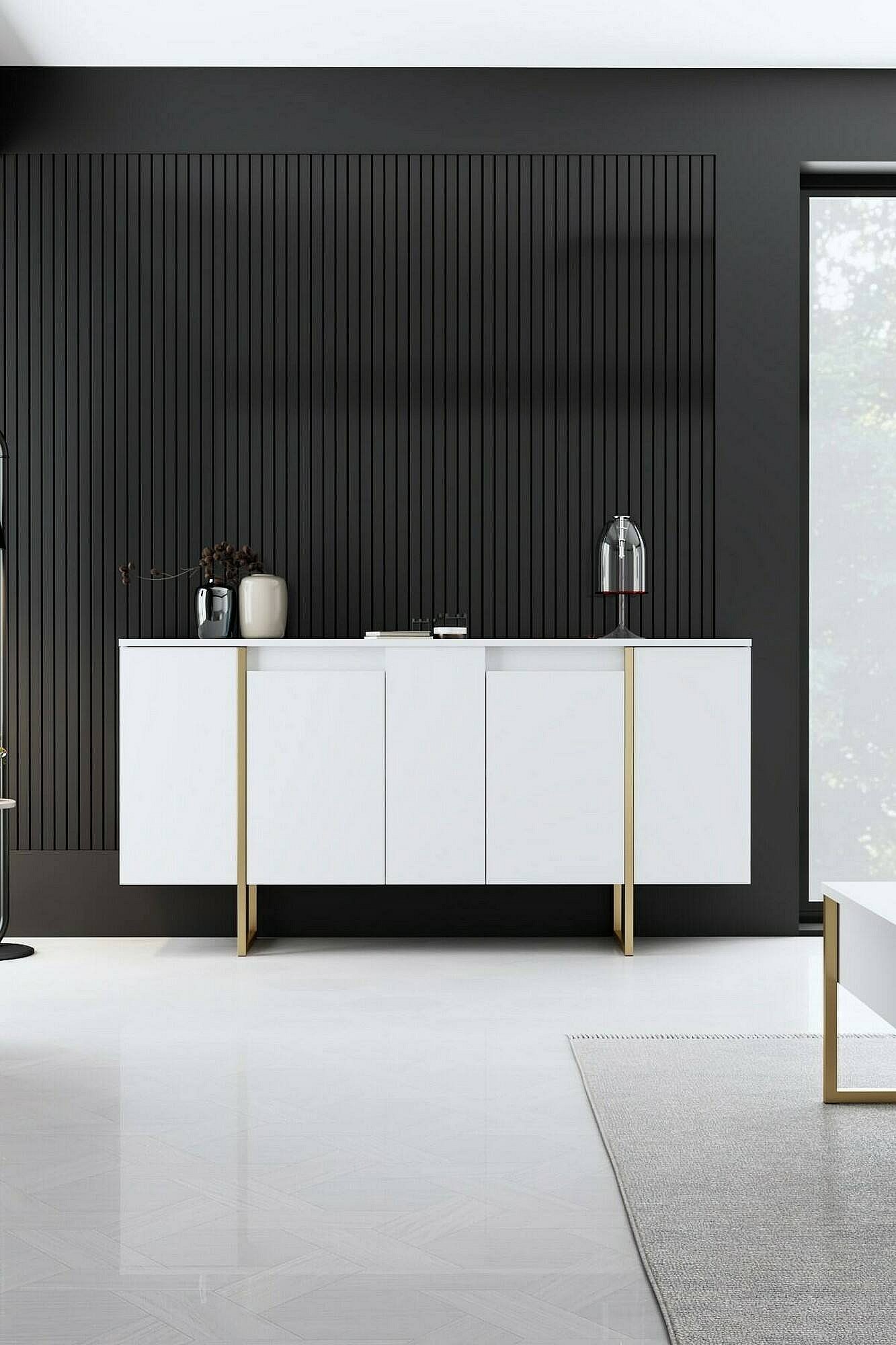 Buffet Betel, Buffet du salon, Commode de salon, Garde-manger de cuisine, 160x35h80 cm, Blanc et Or