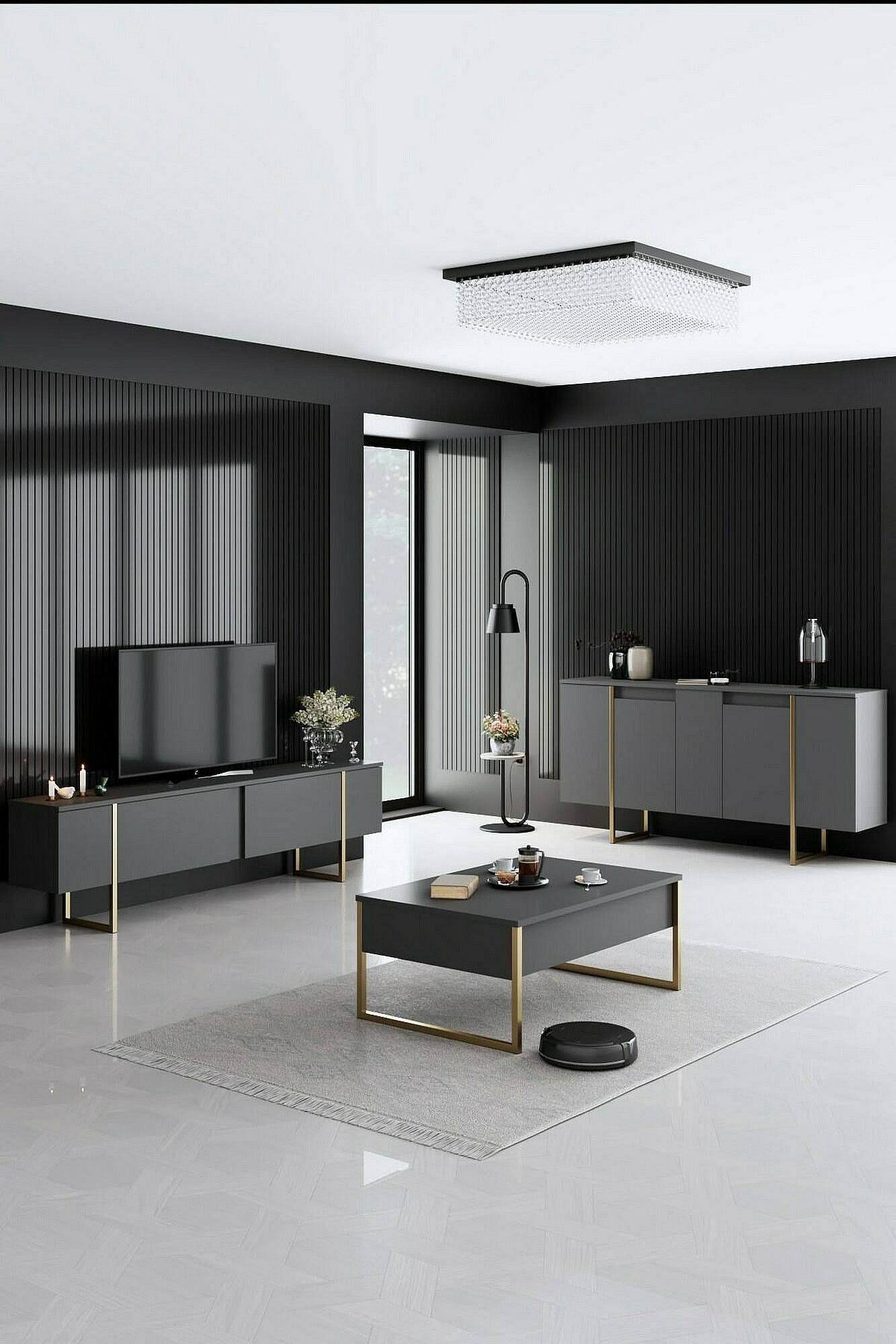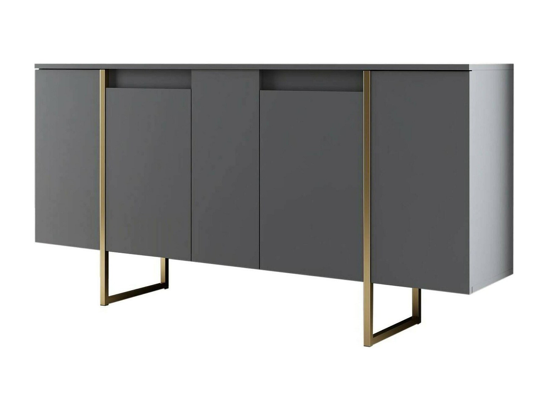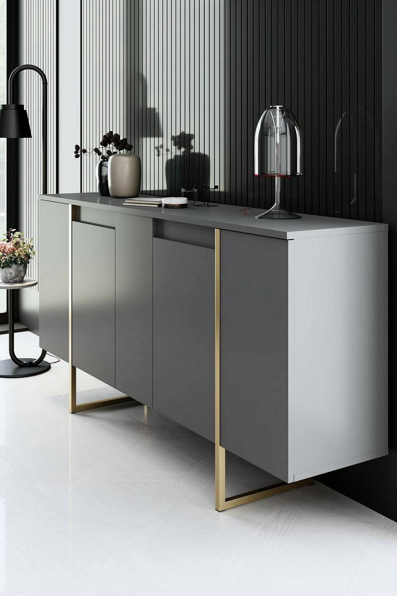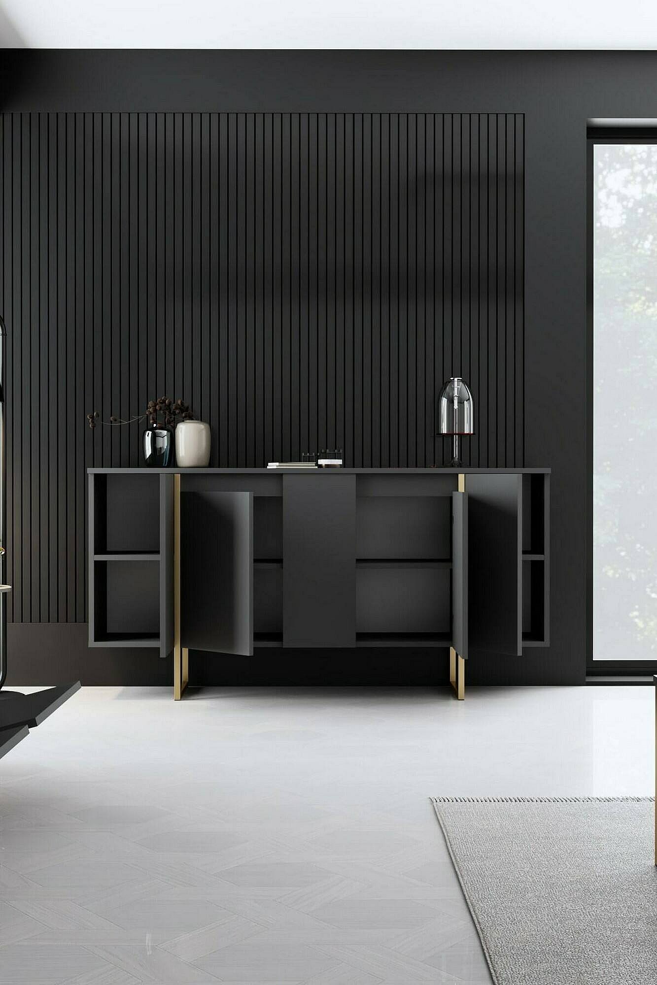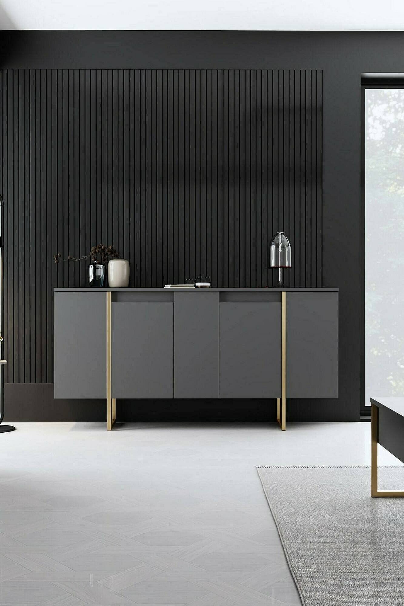 Buffet Yago, Buffet de salon, Buffet de salon moderne avec 4 portes, 200x44h86 cm, Anthracite