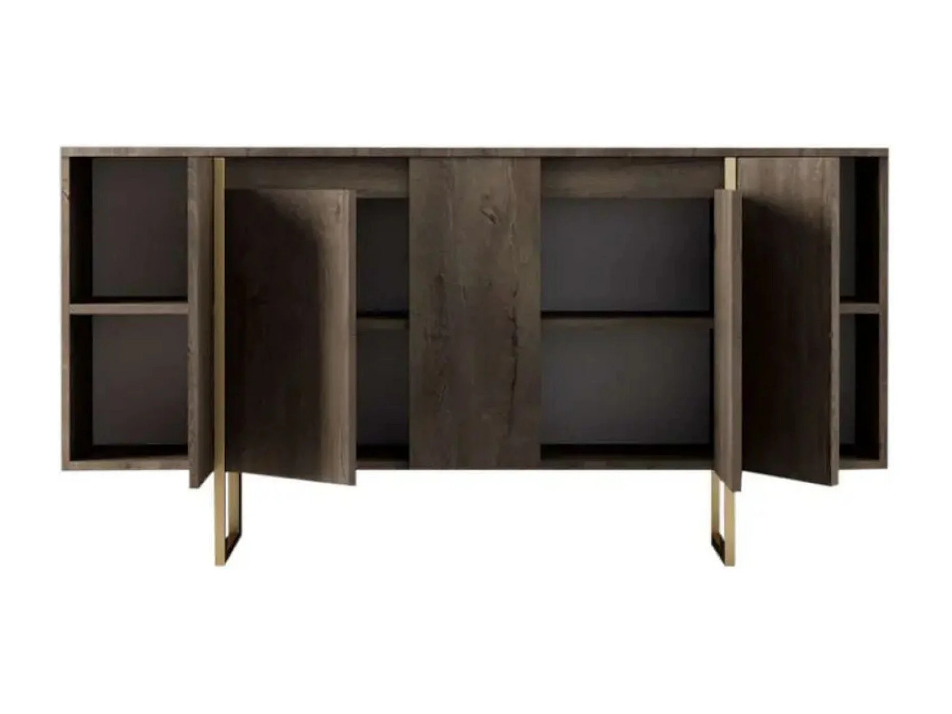 Buffet Betel, Buffet du salon, Commode de salon, Garde-manger de cuisine, 160x35h80 cm, Noyer et Or