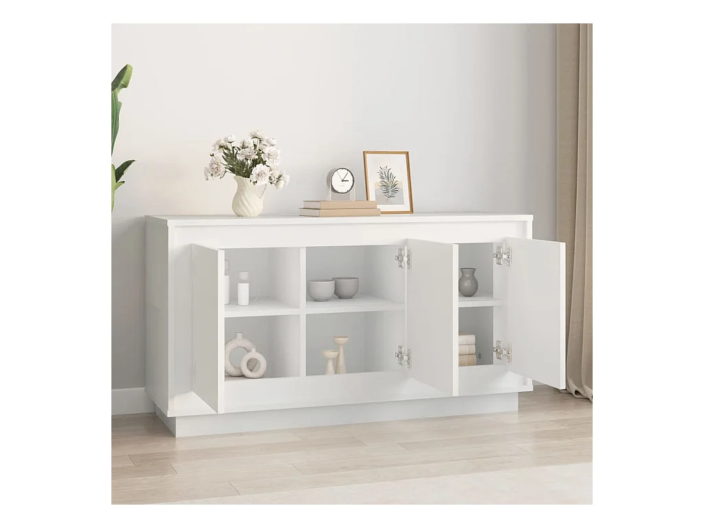 Buffet avec pieds en bois blanc brillant bois d'ingénierie FR46677