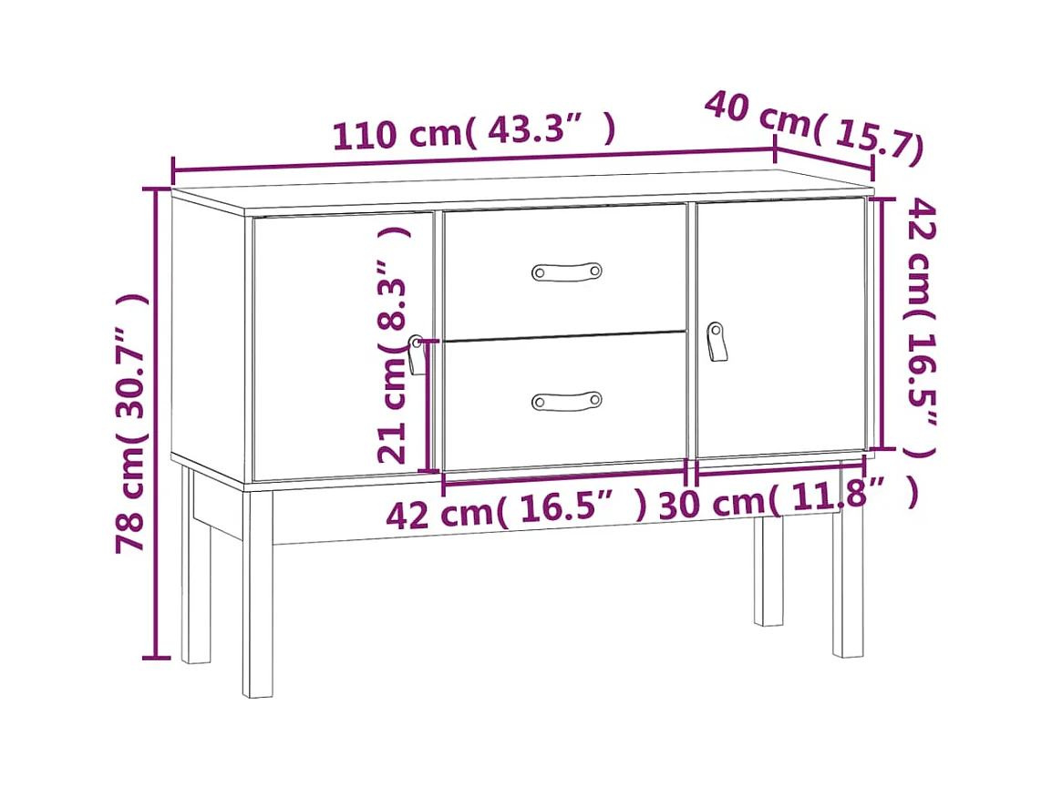 Buffet Blanc 110x40x78 cm Bois massif de pin