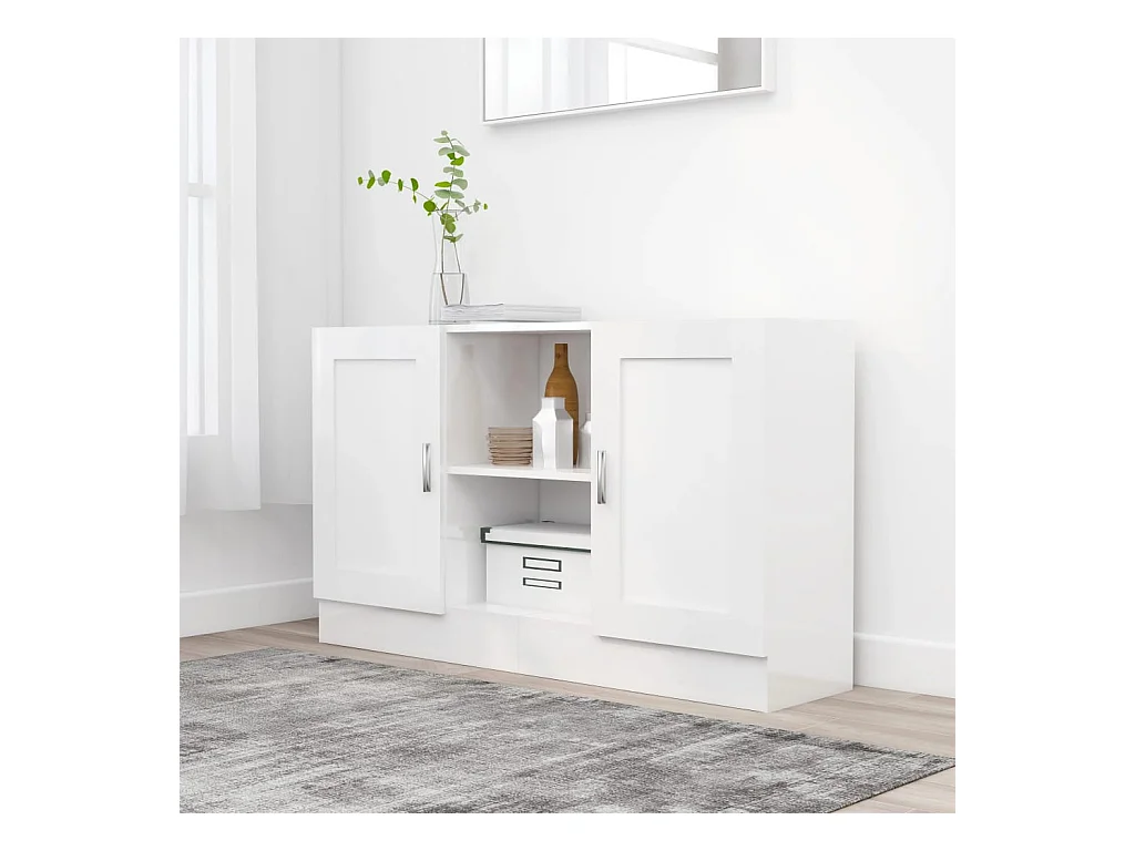 Buffets 2 pcs blanc brillant bois d'ingénierie
