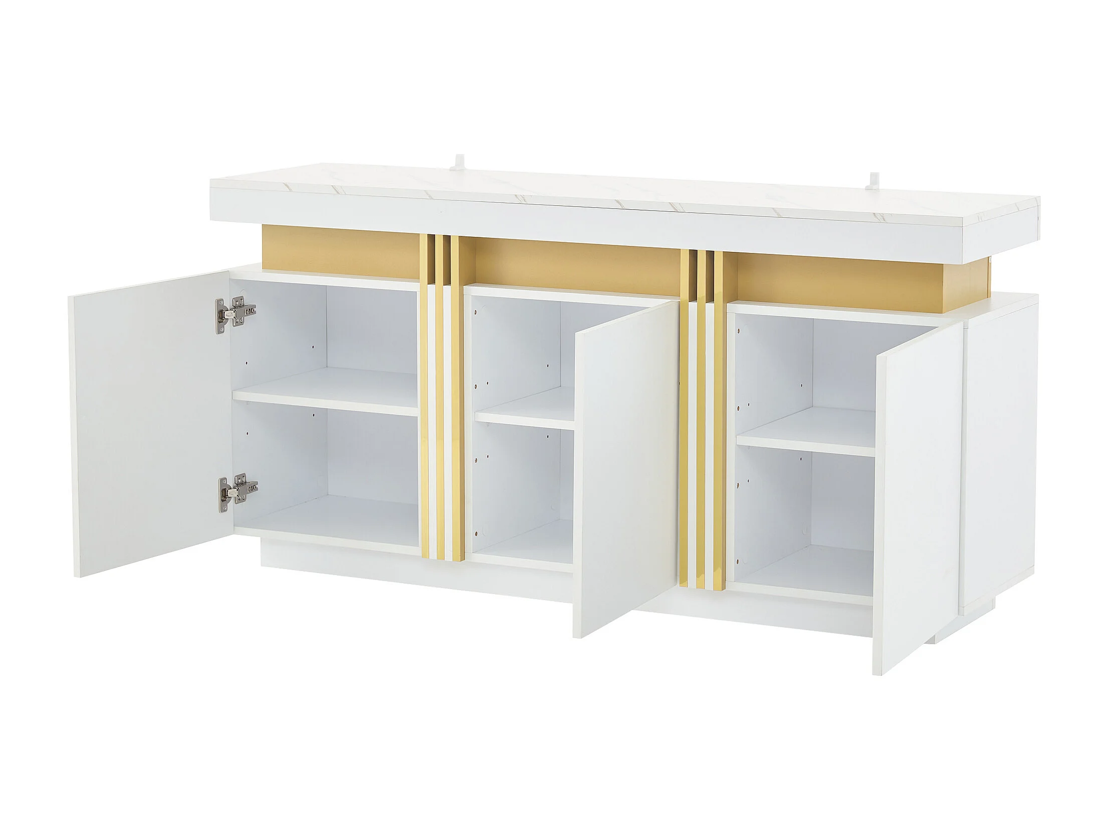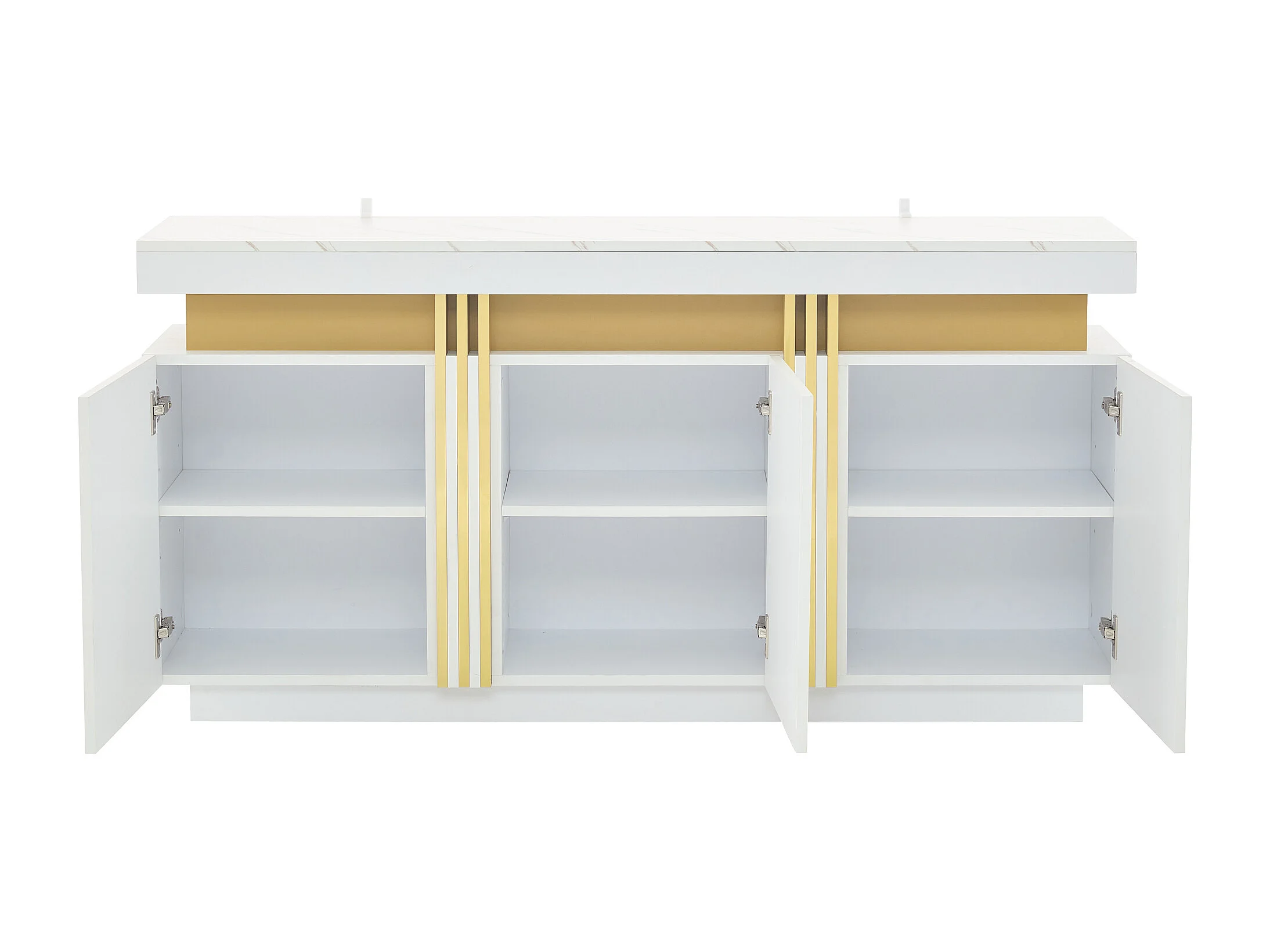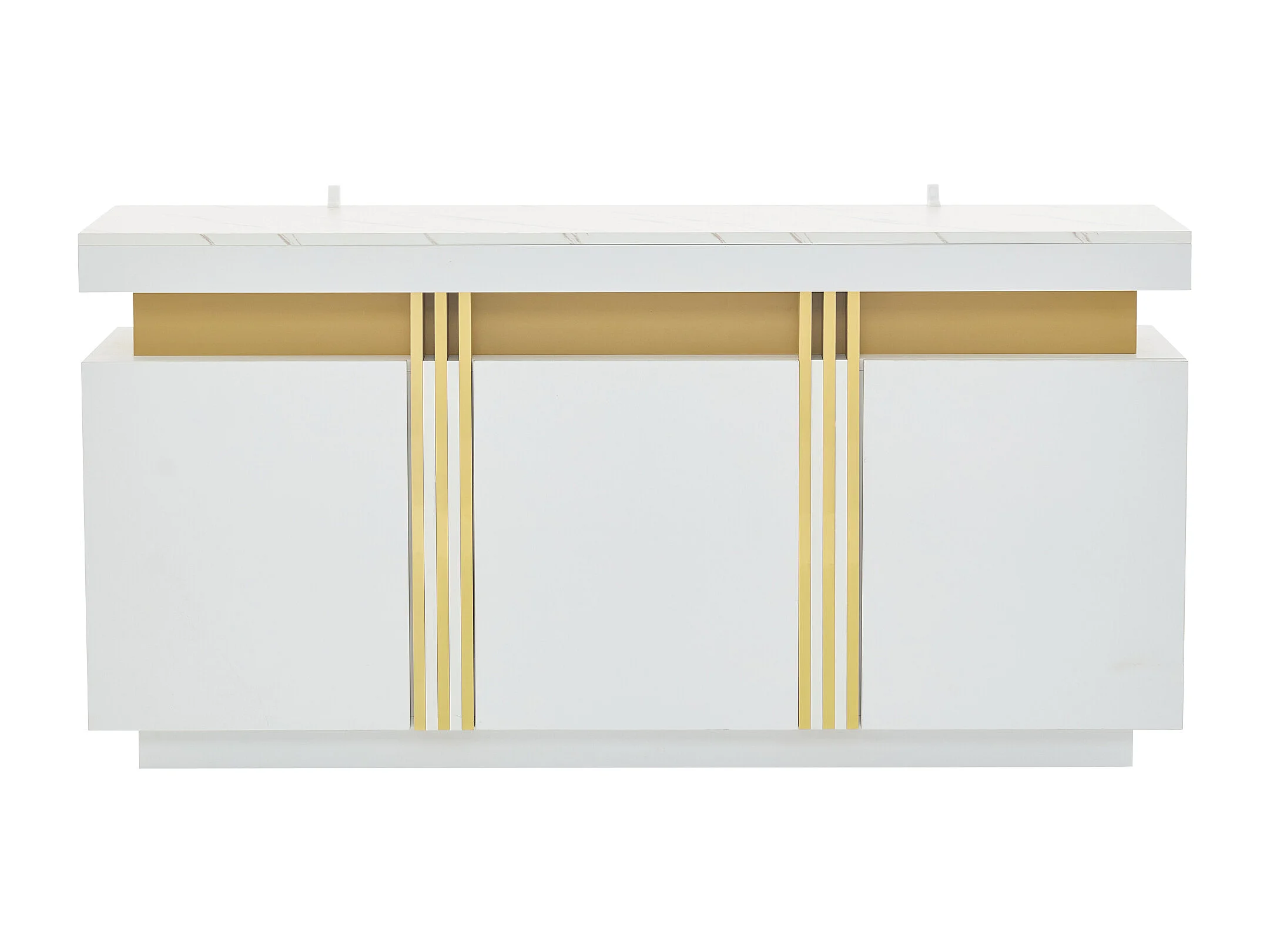 Buffet blanc 3 portes - Buffet avec surpiqûres platine et séparateurs réglables - design sans poignées