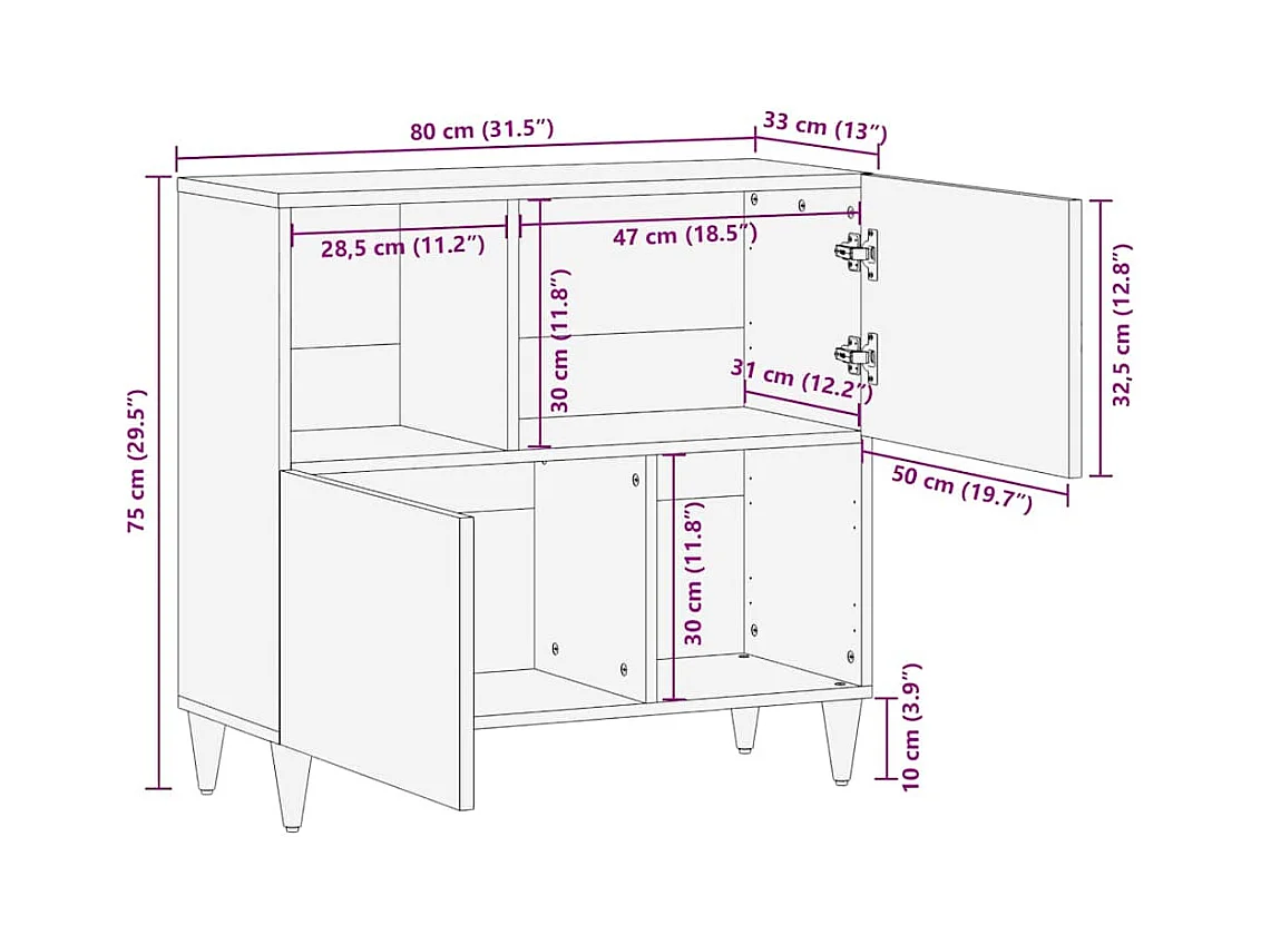 Buffet Blanc 60 x 33.5 x 75 cm Bois de manguier massif