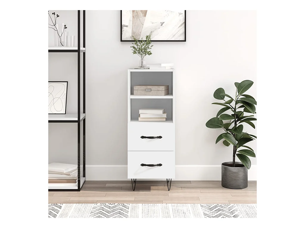 Buffet Blanc brillant 34,5x34x90 cm Bois d'ingénierie