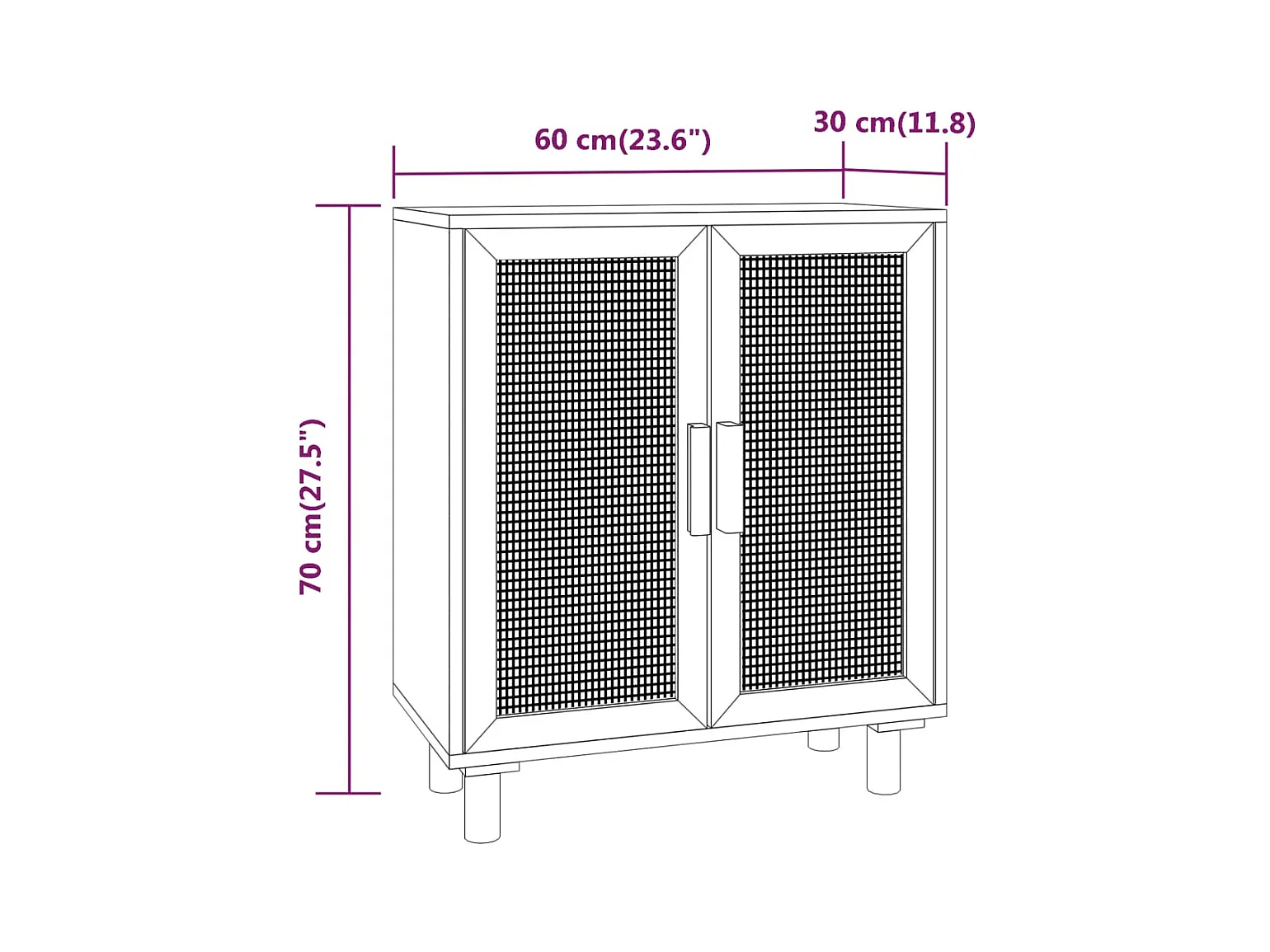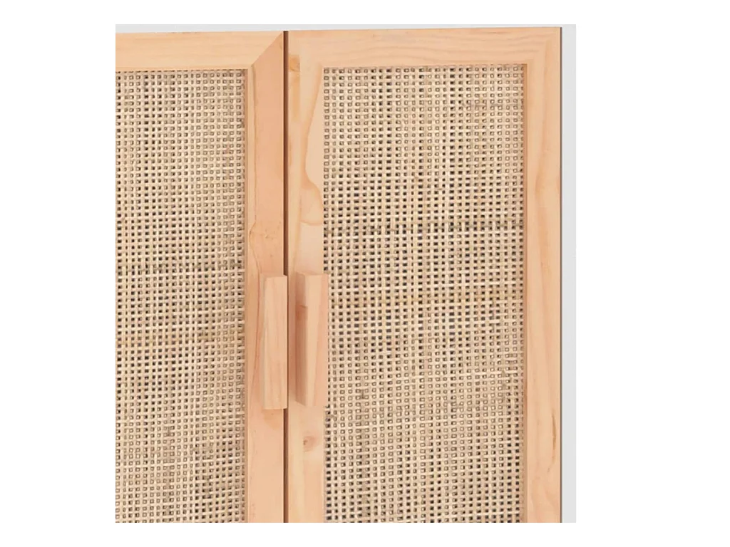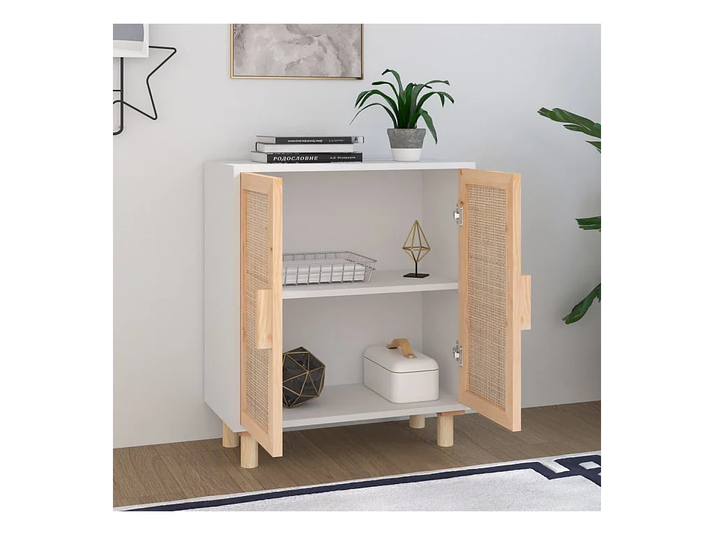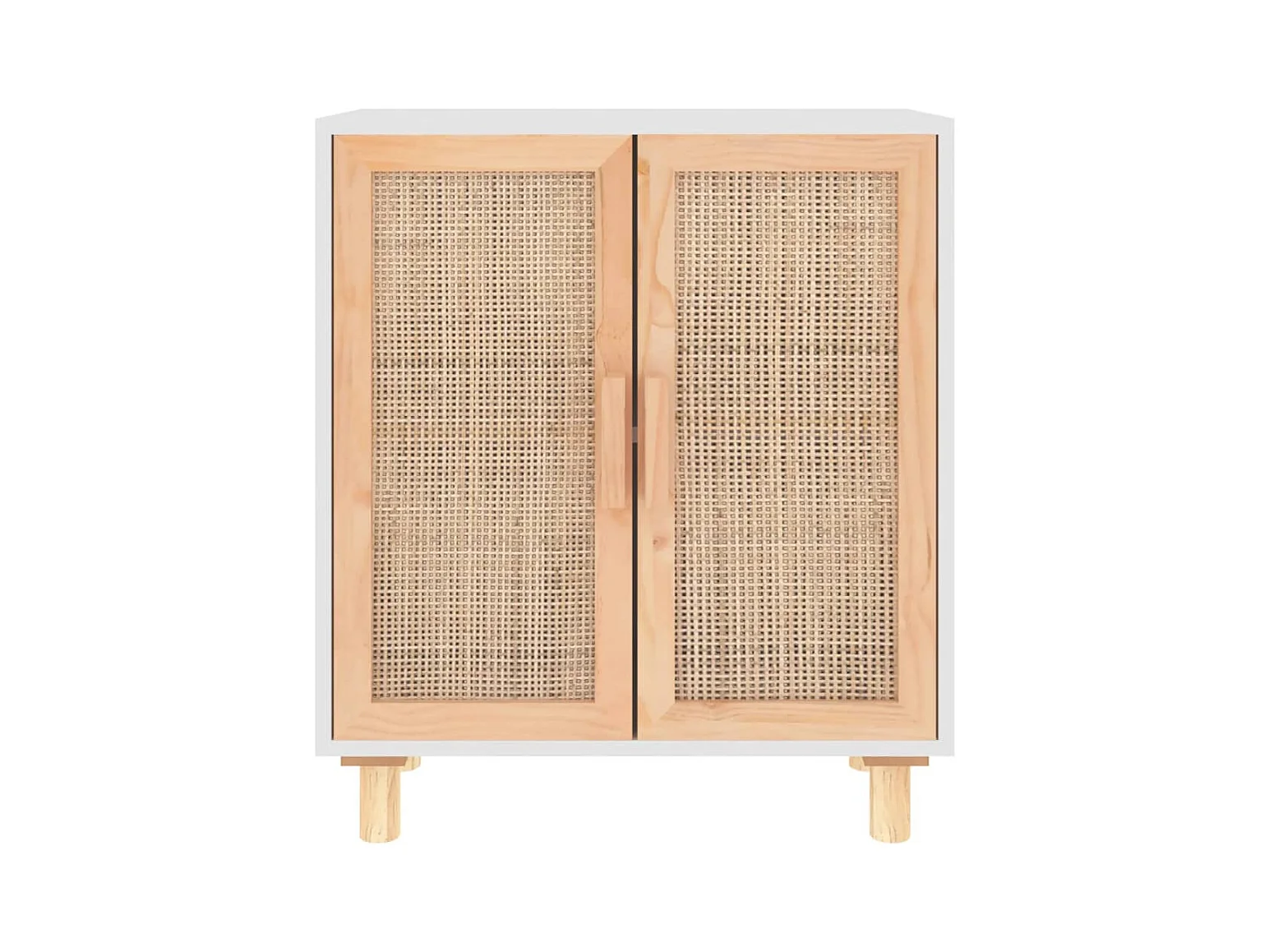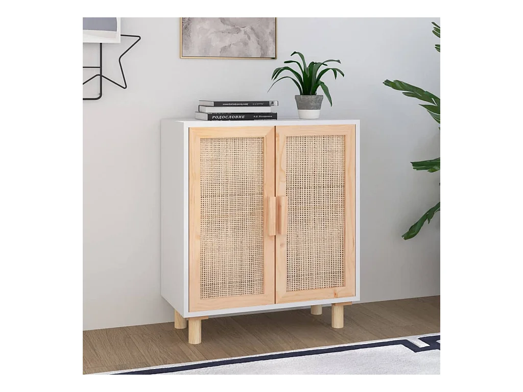 Buffet Blanc 60x30x70 cm Bois de pin massif et rotin naturel