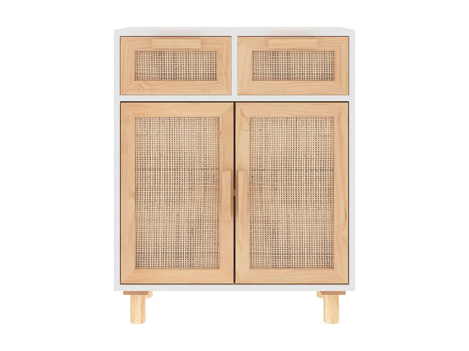 Buffet Blanc 60x30x75 cm Bois de pin massif et rotin naturel