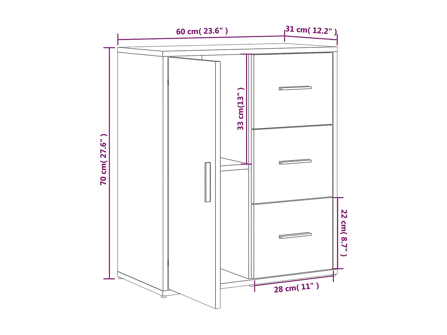 Buffet blanc 60x31x70 cm bois d'ingénierie
