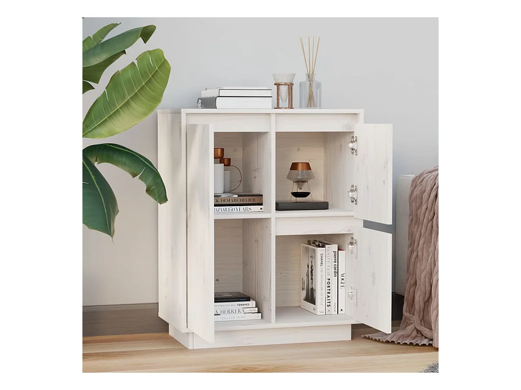 Buffet Blanc 60x34x75 cm Bois massif de pin