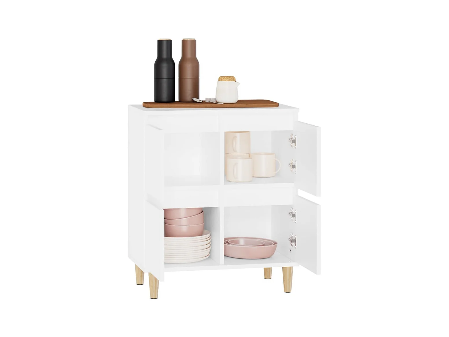 Buffet avec pieds en bois Blanc brillant 60x35x70 cm Aggloméré