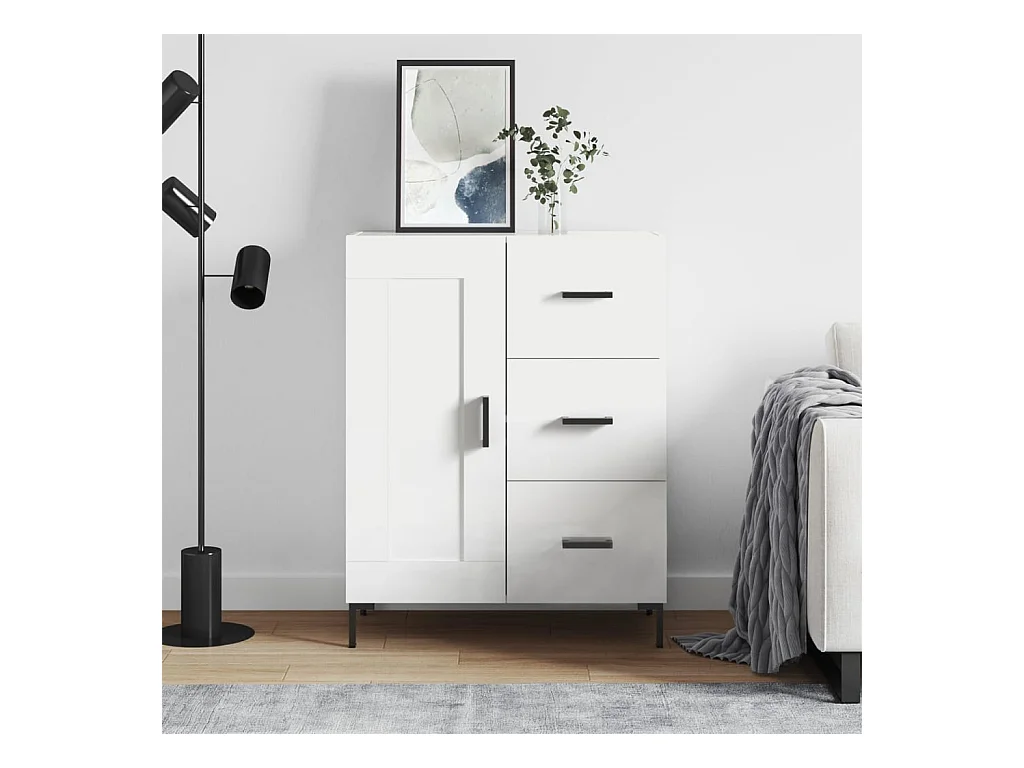 Buffet Blanc brillant 69,5x34x90 cm Bois d'ingénierie QWE60663