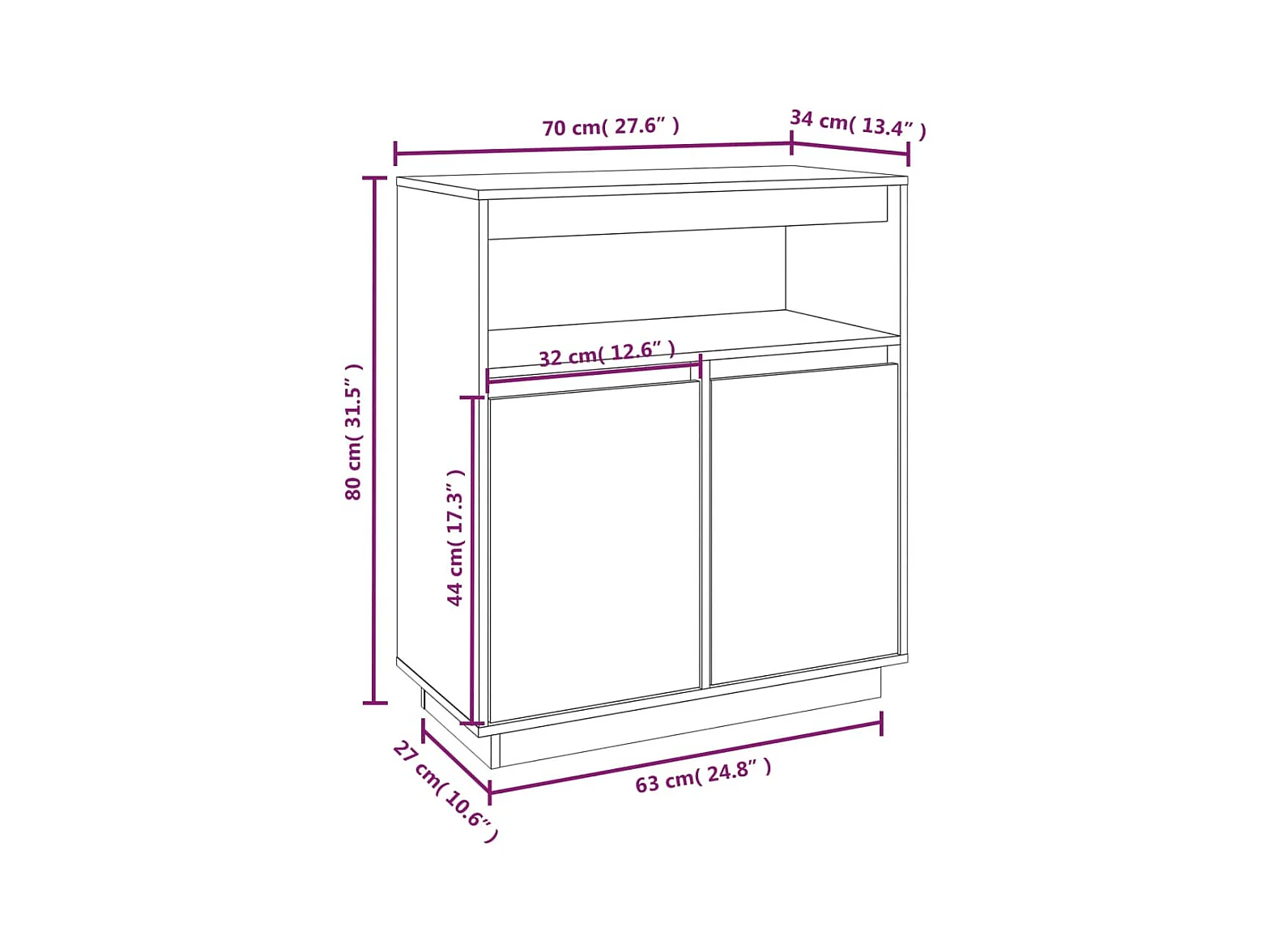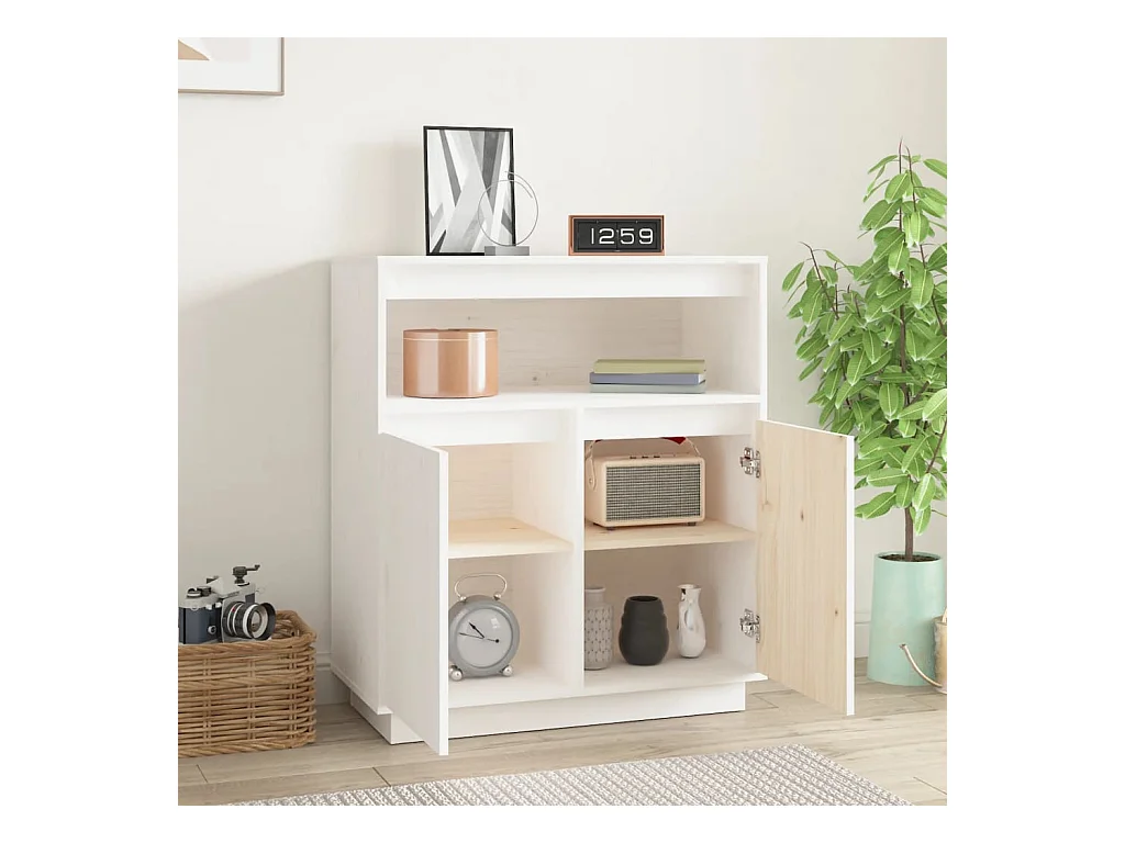 Buffet Blanc 70x34x80 cm Bois massif de pin