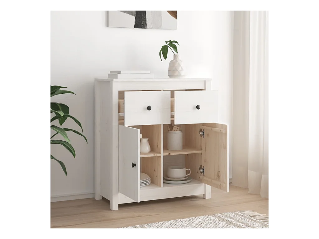 Buffet HAMAR Blanc 85x35x80 cm Bois massif de pin