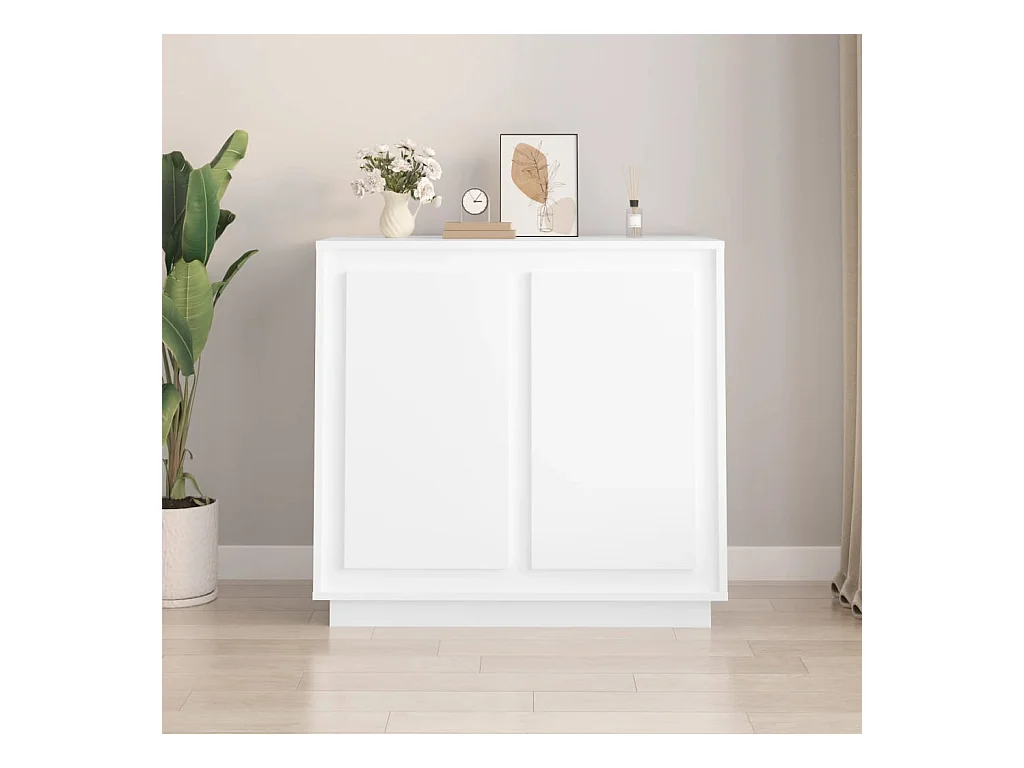 Buffet blanc brillant 80x34x75 cm bois d'ingénierie