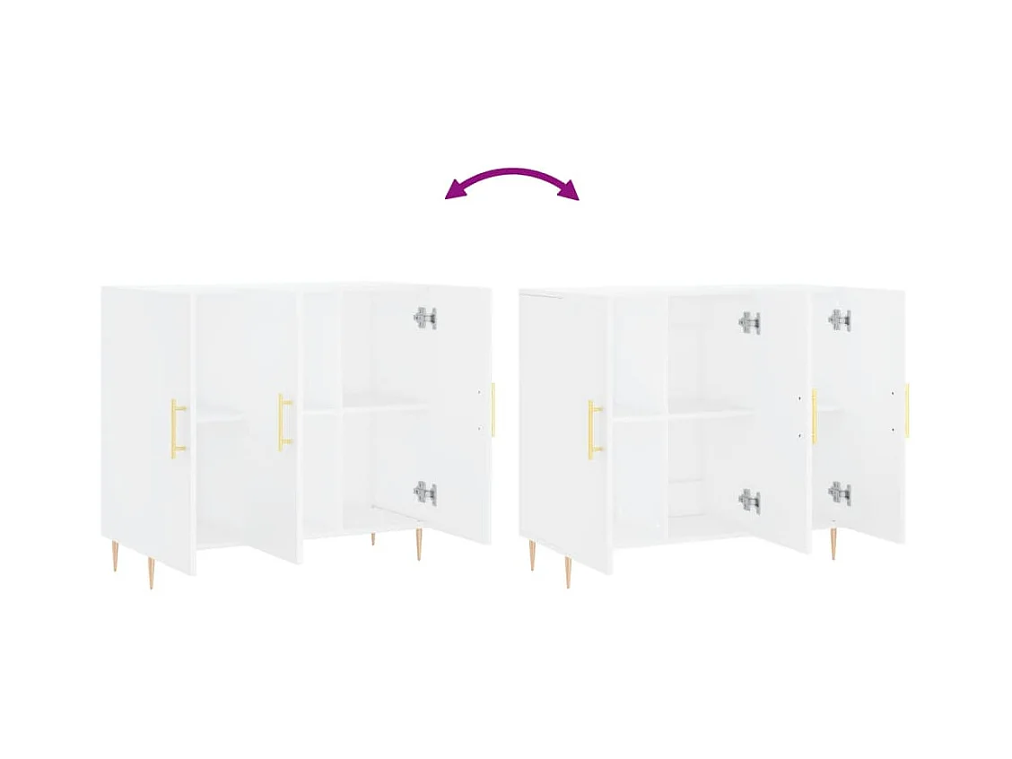 Buffet blanc brillant 90x34x80 cm bois d'ingénierie