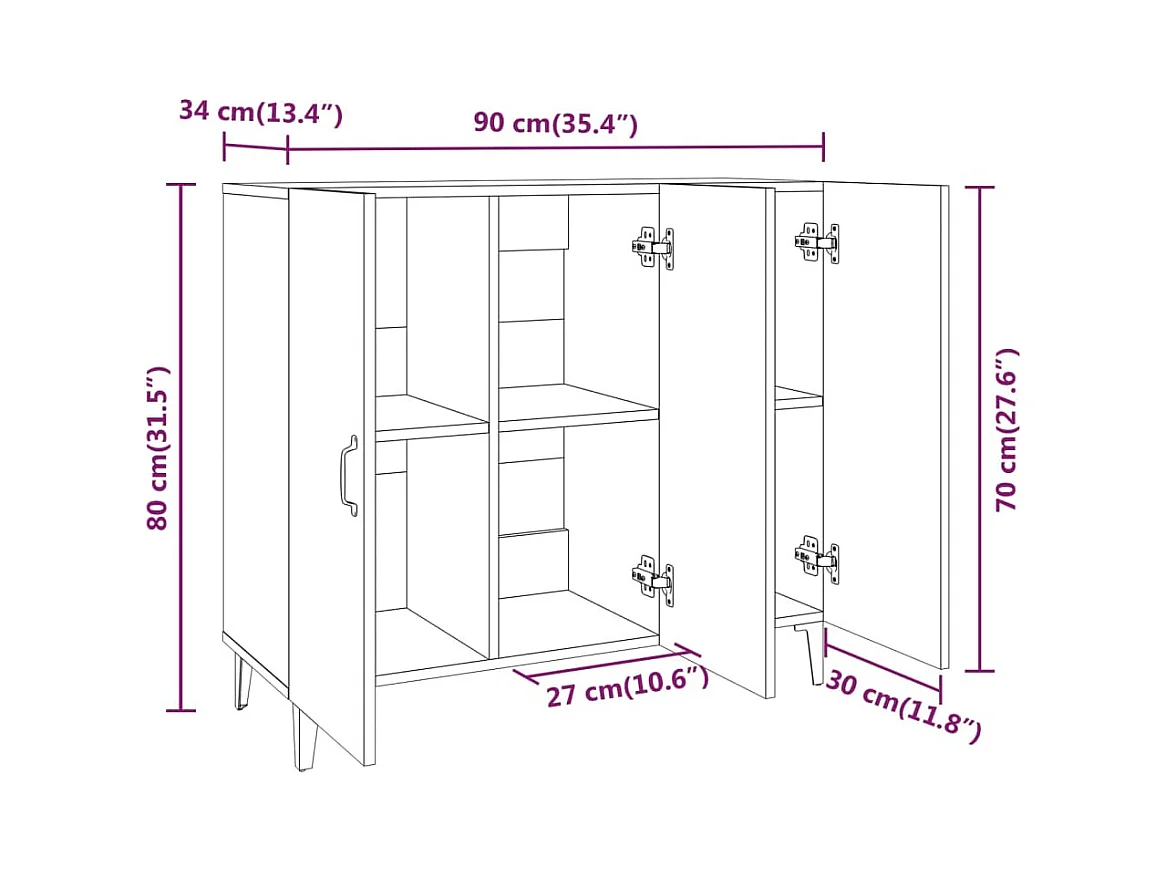 Buffet blanc 90x34x80 cm bois d'ingénierie