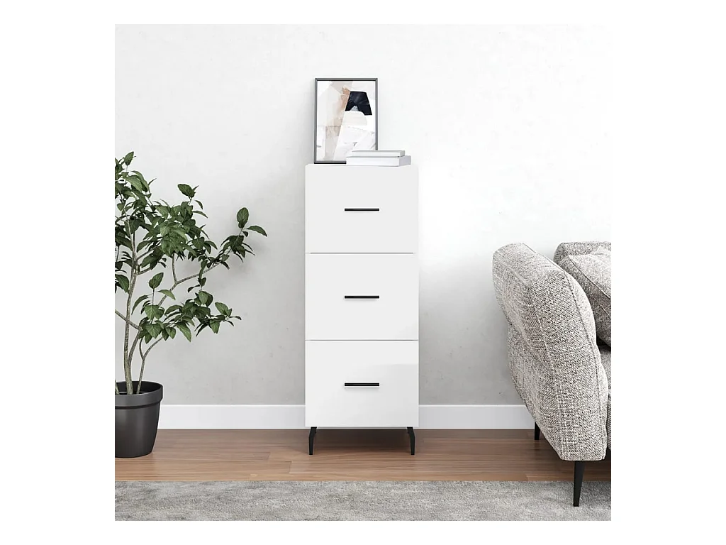Buffet Blanc brillant 34,5x34x90 cm Bois d'ingénierie