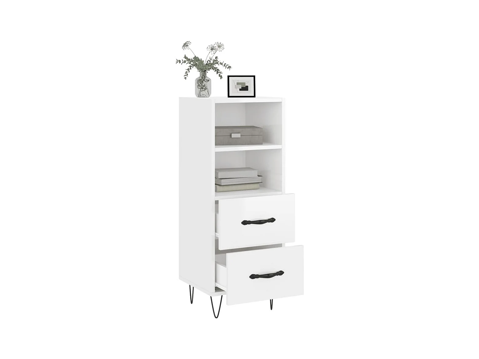 Buffet Blanc brillant 34,5x34x90 cm Bois d'ingénierie QWE65102
