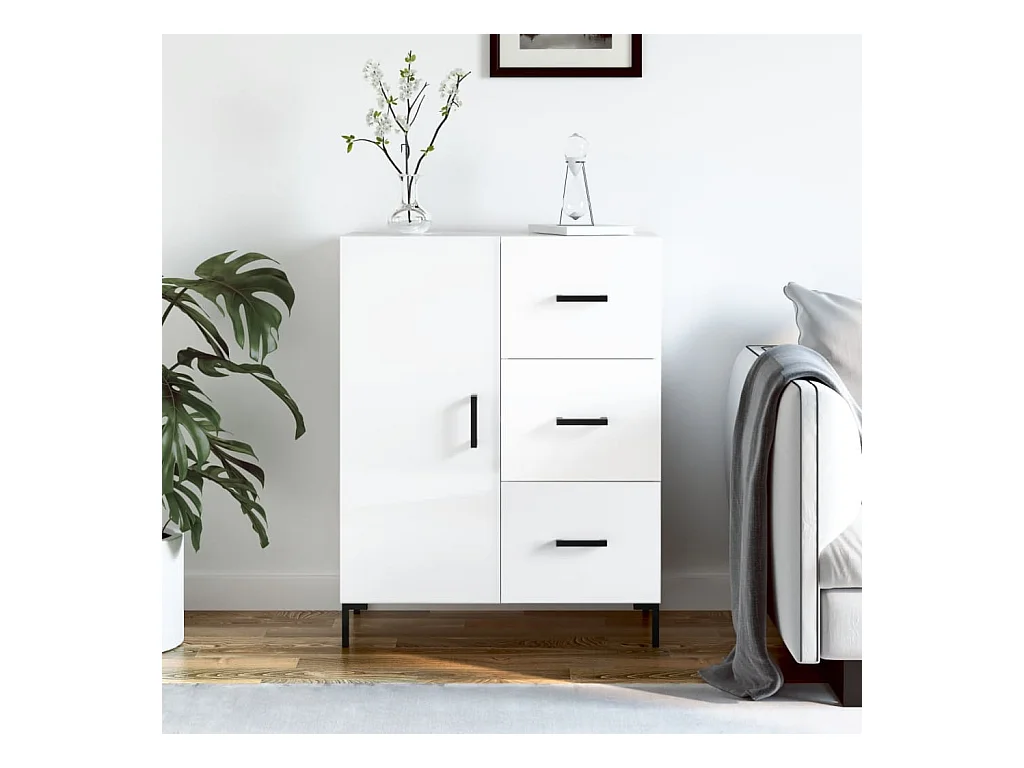 Buffet Blanc brillant 69,5x34x90 cm Bois d'ingénierie
