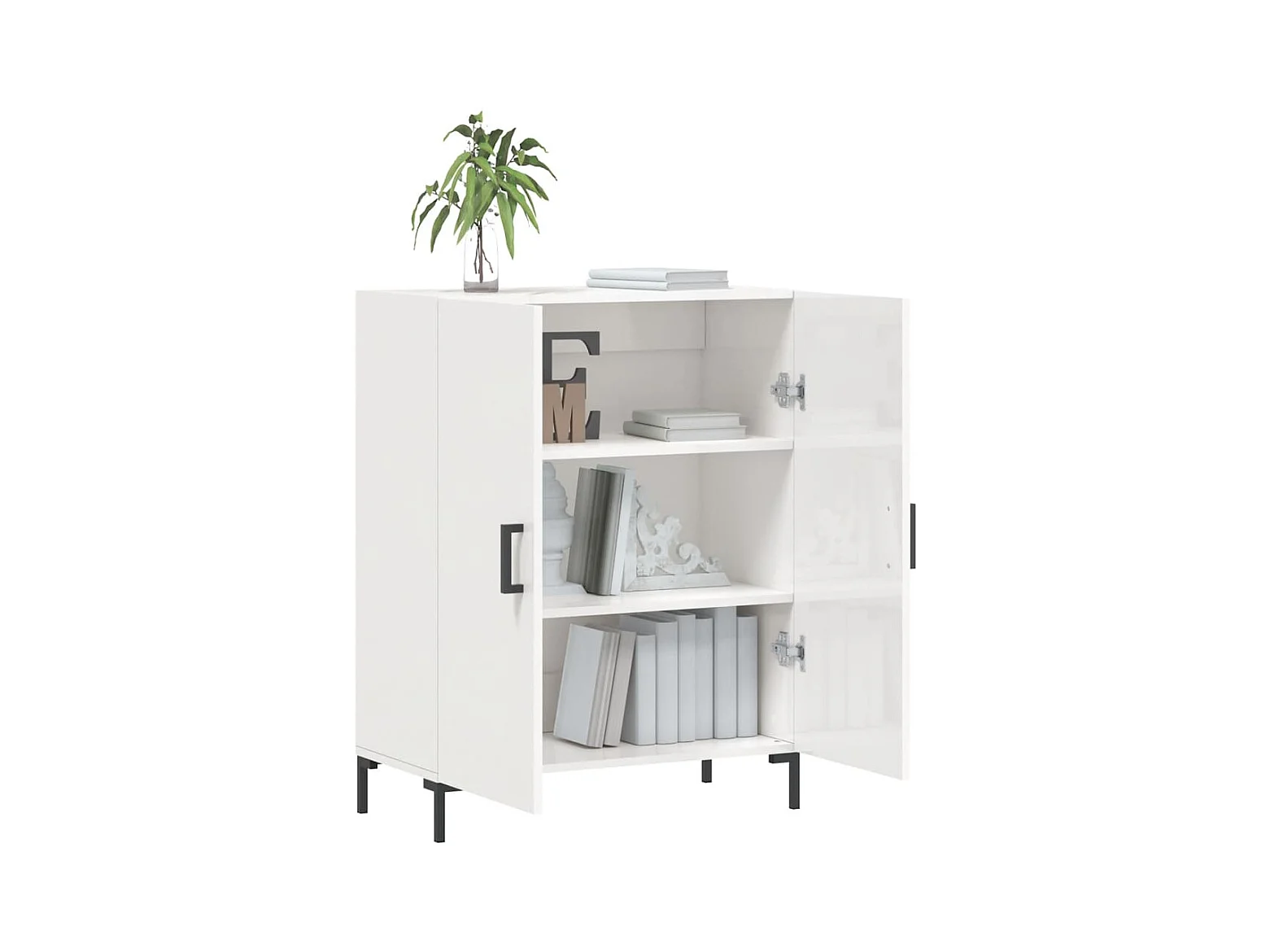 Buffet Blanc brillant 69,5x34x90 cm Bois d'ingénierie QWE55483