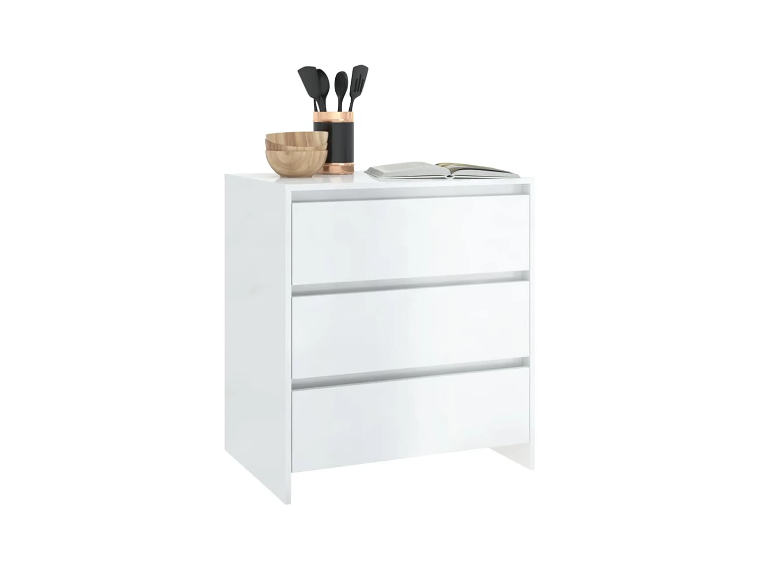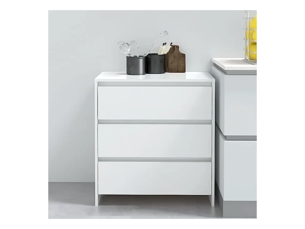 Buffet et 3 tiroirs Blanc brillant 120x41x75 cm Bois ingénierie