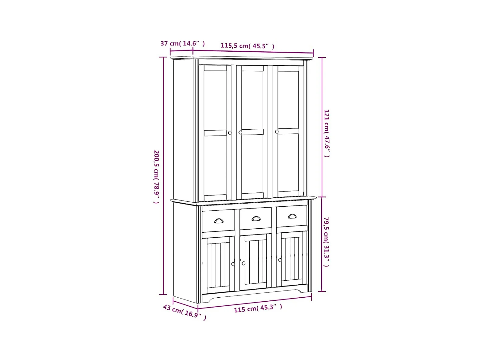 Buffet BODO blanc 115,5x43x200,5 cm bois massif de pin